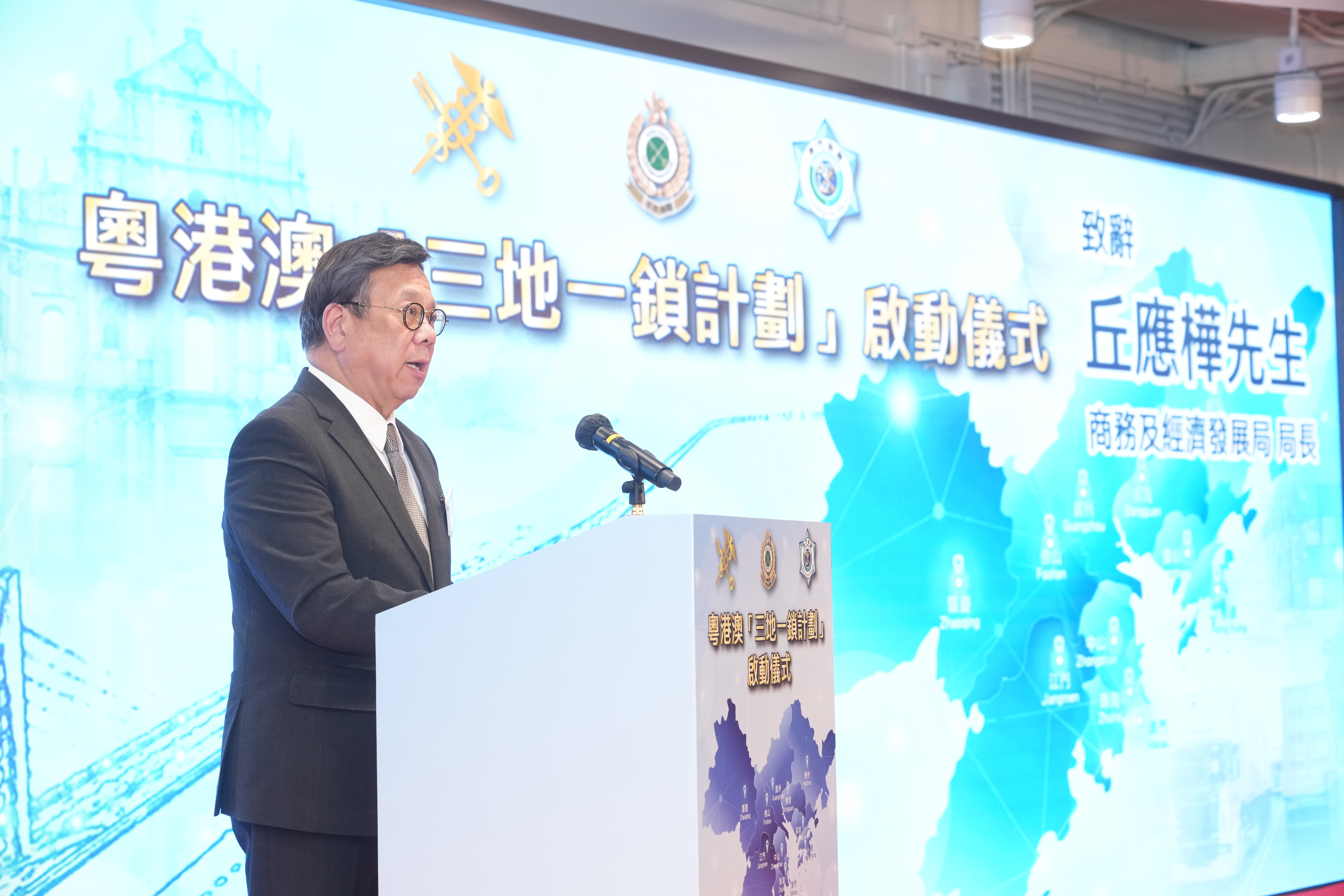 丘應樺在啟動儀式上致辭時表示,期望「三地一鎖計劃」未來有進一步的發展,在全國各地設立更多清關點,結合香港完善的海陸空運輸網絡,為業界提供更多便利。