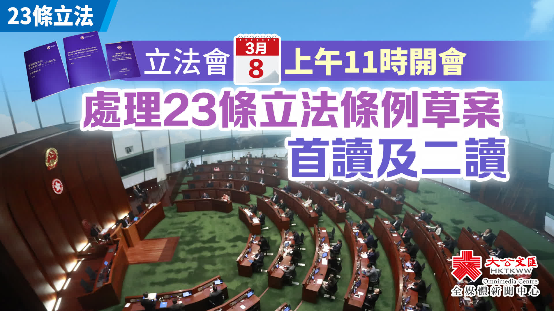 大公文匯全媒體報道,行政長官會同行政會議決定,《維護國家安全條例草案》(《草案》)今日(8日)刊憲並提交立法會審議。立法會今日上午舉行會議,進行《維護國家安全條例草案》的首讀和二讀。立法會《維護國家安全條例草案》法案委員會下午逐項審議條文。