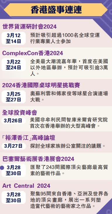「香港是國際金融中心,匯聚國際人才、商業活動集中地,如果企業期望開拓市場,香港是一個非常不錯的地點。」立法會金融界議員陳振英昨日對《大公報》表示,過往香港舉辦不少大型金融活動「打響名堂」,國家十四五規劃確立香港為八個重點領域發展中心,隨着有更多國際大型活動在港舉辦,強化香港的國際地位,有助吸引其他大型全球性展覽會或會議在港舉辦,以至大型企業落戶。