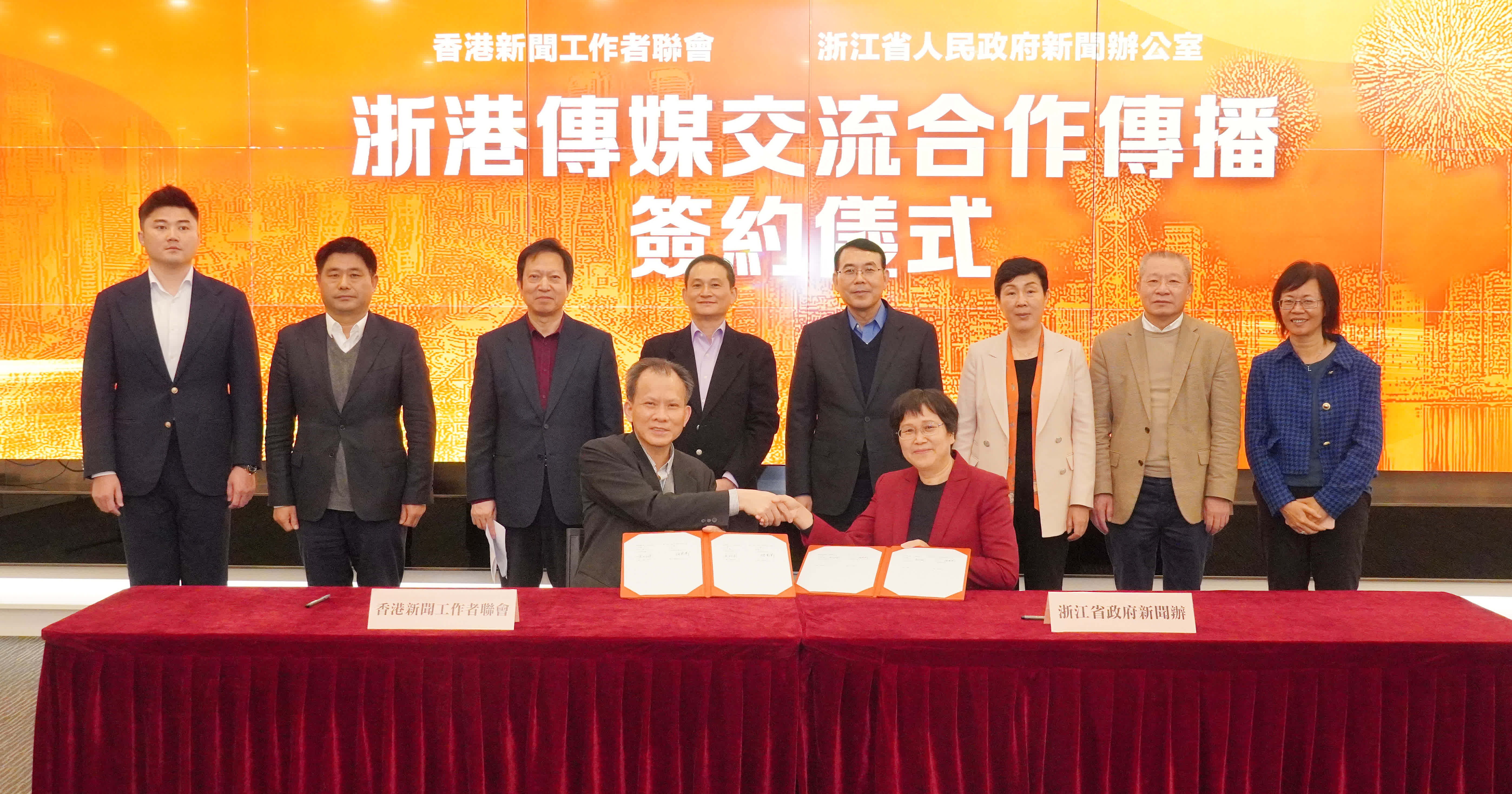 出席簽署儀式的還有浙江省委宣傳部副部長范慶瑜,浙江省委宣傳部部務會議成員、省政府新聞辦新聞發言人駱莉莉,以及香港新聞聯副主席顧堯坤、郭一鳴、文灼非、楊勇、孫玉勝、蔡晉、林藹純等。