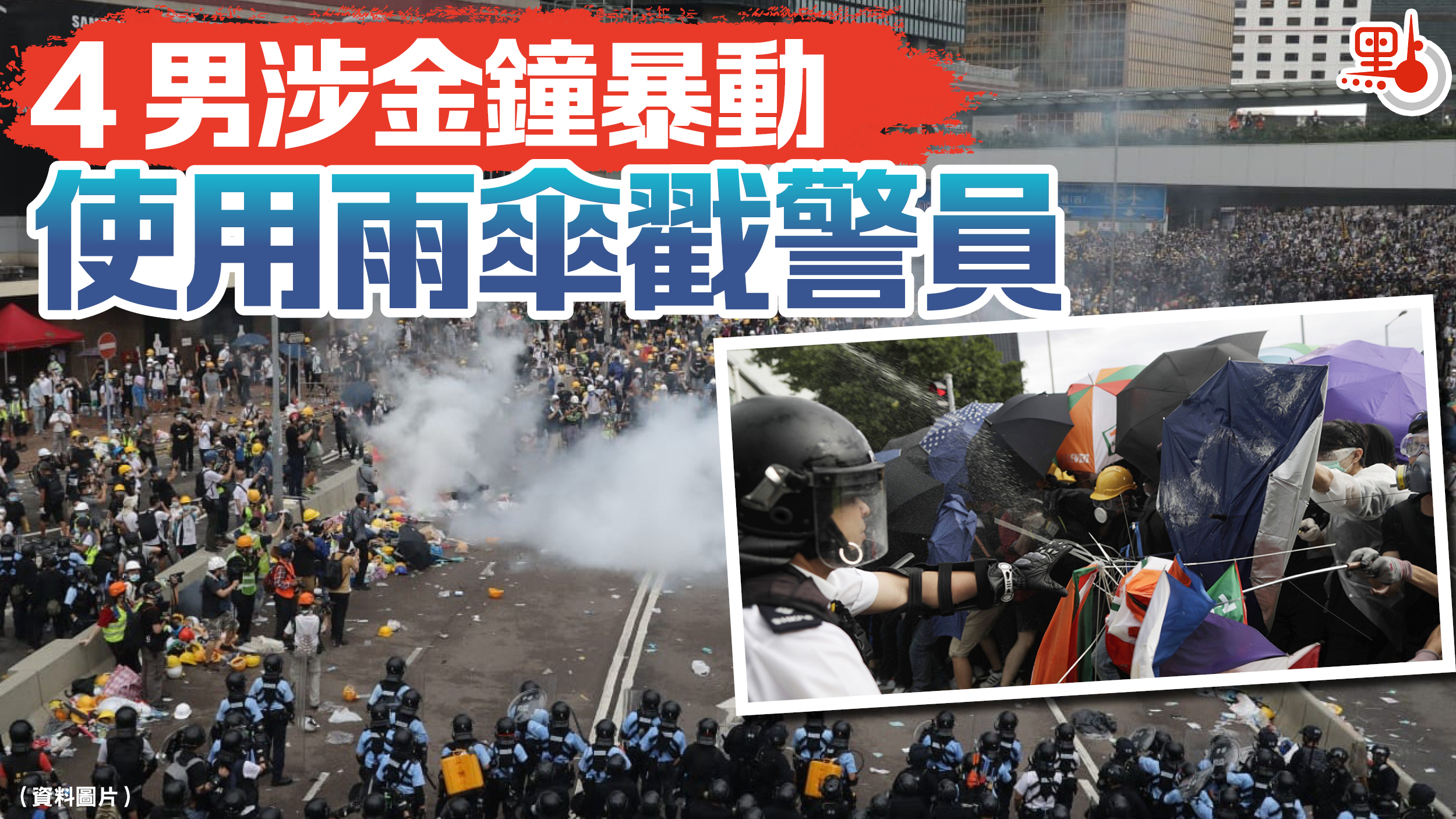 大公文匯全媒體報道,2019年7月1日,有暴徒在金鐘一帶聚集,演變成暴亂。4名男子否認暴動罪,案件昨日(12日)於區域法院開審。控方開案陳詞指,被告曾在防線用傘戳警員和護送示威者離開。