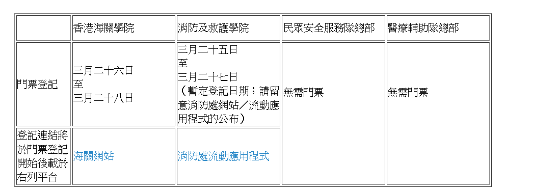 就開放日的詳情,市民可留意相關部隊在網站或流動應用程式的公布,以登記索取門票,成功申請者會收到有關部隊的通知。