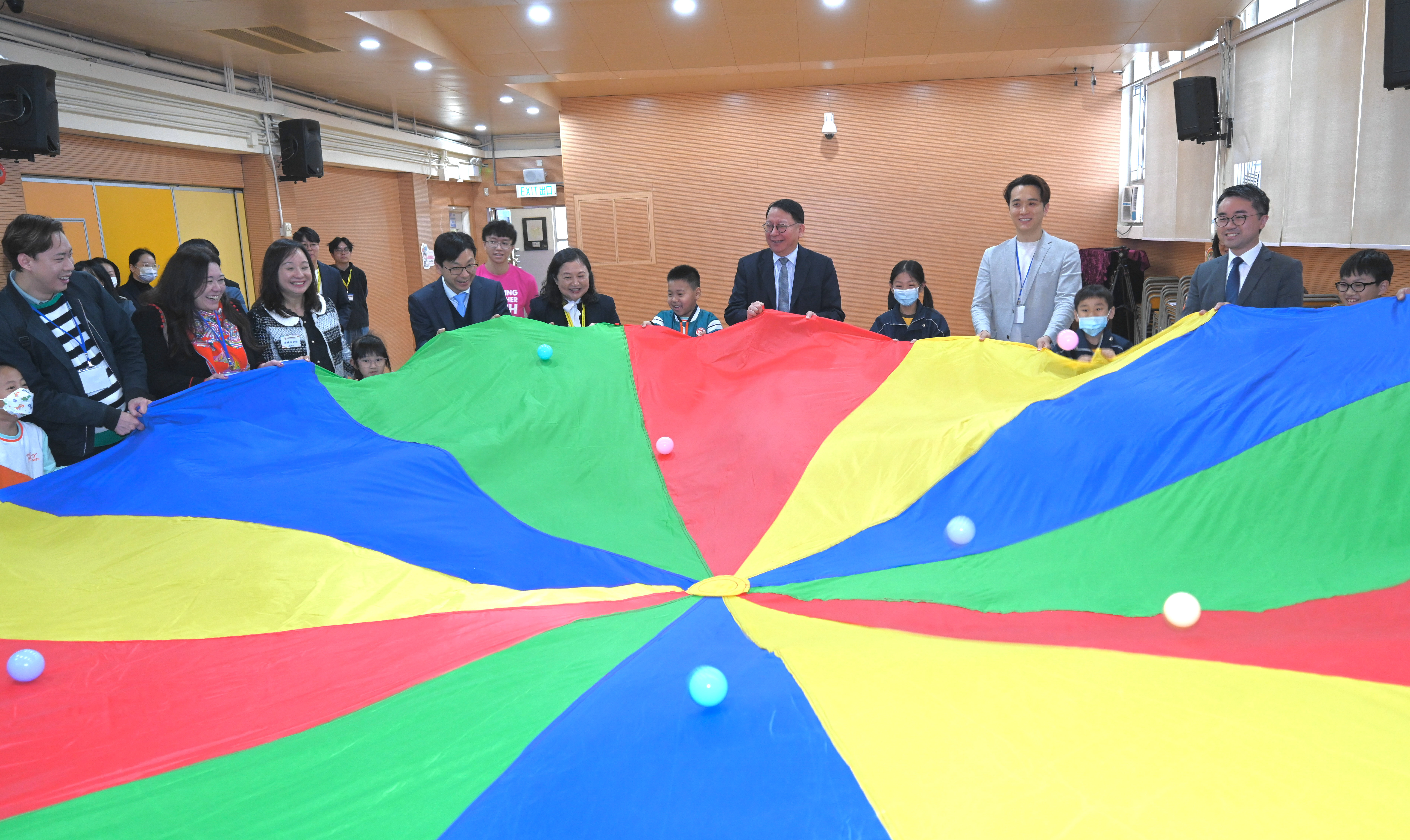 會議後,陳國基與委員參觀荃灣公立何傳耀紀念小學,視察另一精準扶貧項目在校課後託管服務計劃的推行情況。陳國基和委員與參加計劃的學童和家長交流,了解學童在導師指導下在校接受功課輔導、溫習和參加課餘活動的情況,並欣悉計劃減輕家長照顧子女的壓力,方便他們外出工作,回家後也有更多時間與子女享受家庭樂。陳國基在勞工及福利局局長孫玉菡及其他官員陪同下,亦與學童進行小組遊戲,鼓勵他們提升社交能力和紓緩學習壓力。