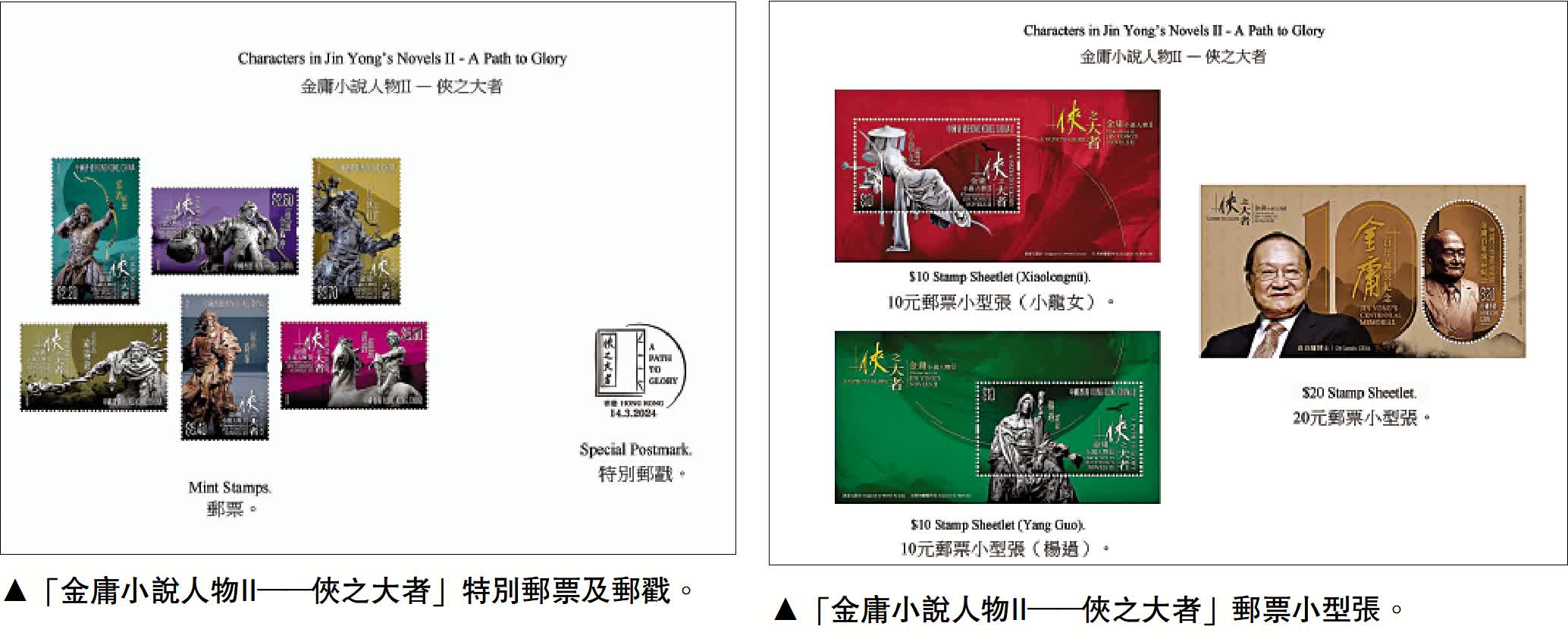 時值金庸百年誕辰,全國各地都在辦紀念活動。如在金庸的故鄉浙江文學館舉辦了「俠之大者、百年金庸」特別展覽;在金庸長期生活的香港,「俠之大者──金庸百年誕辰紀念」活動次第展開,中環愛丁堡廣場今起舉辦「江湖盛滙」展覽,沙田香港文化博物館將舉辦「俠之大者──金庸百年誕辰紀念·任哲雕塑展」。與此同時,線上紀念活動、紀念郵票、書籍再版等更是絡繹不絕。