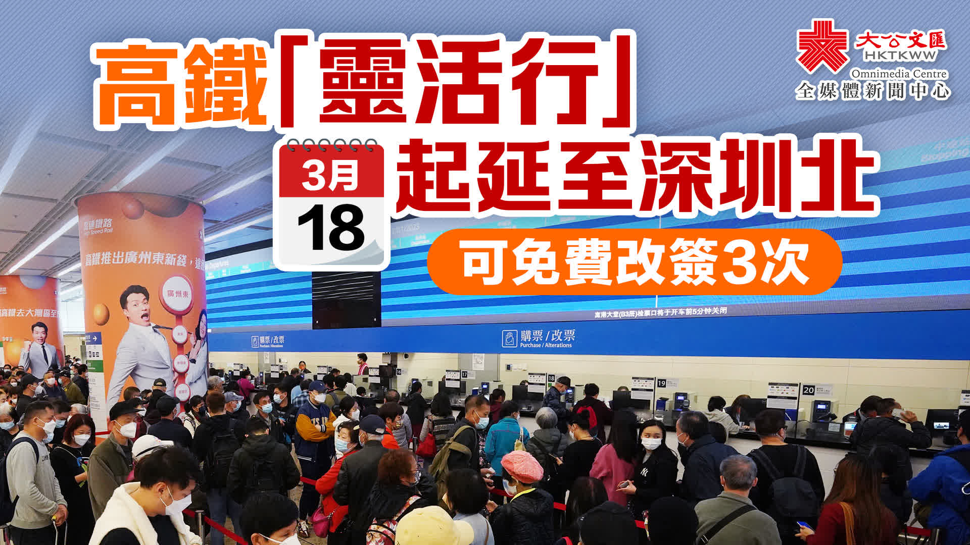 大公文匯全媒體報道,港鐵公布,容許高鐵乘客即日變更車次的「靈活行」安排,下周一(18日)起由目前只容許西九龍至福田的車次作更改,擴展至來往深圳北站的車次,適用車次將由現時38班,增加至合共92班。