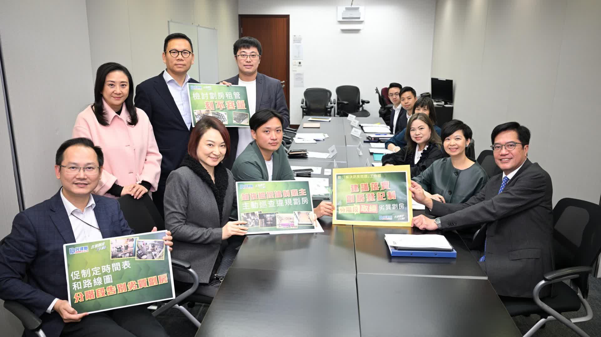黃偉綸向議員表示,自去年10月施政報告宣布成立「解決劏房問題」工作組以來,相關政策局和部門正全速為全面處理劏房問題作深入討論及調研。他十分感謝民建聯的意見,必定仔細考慮研究。