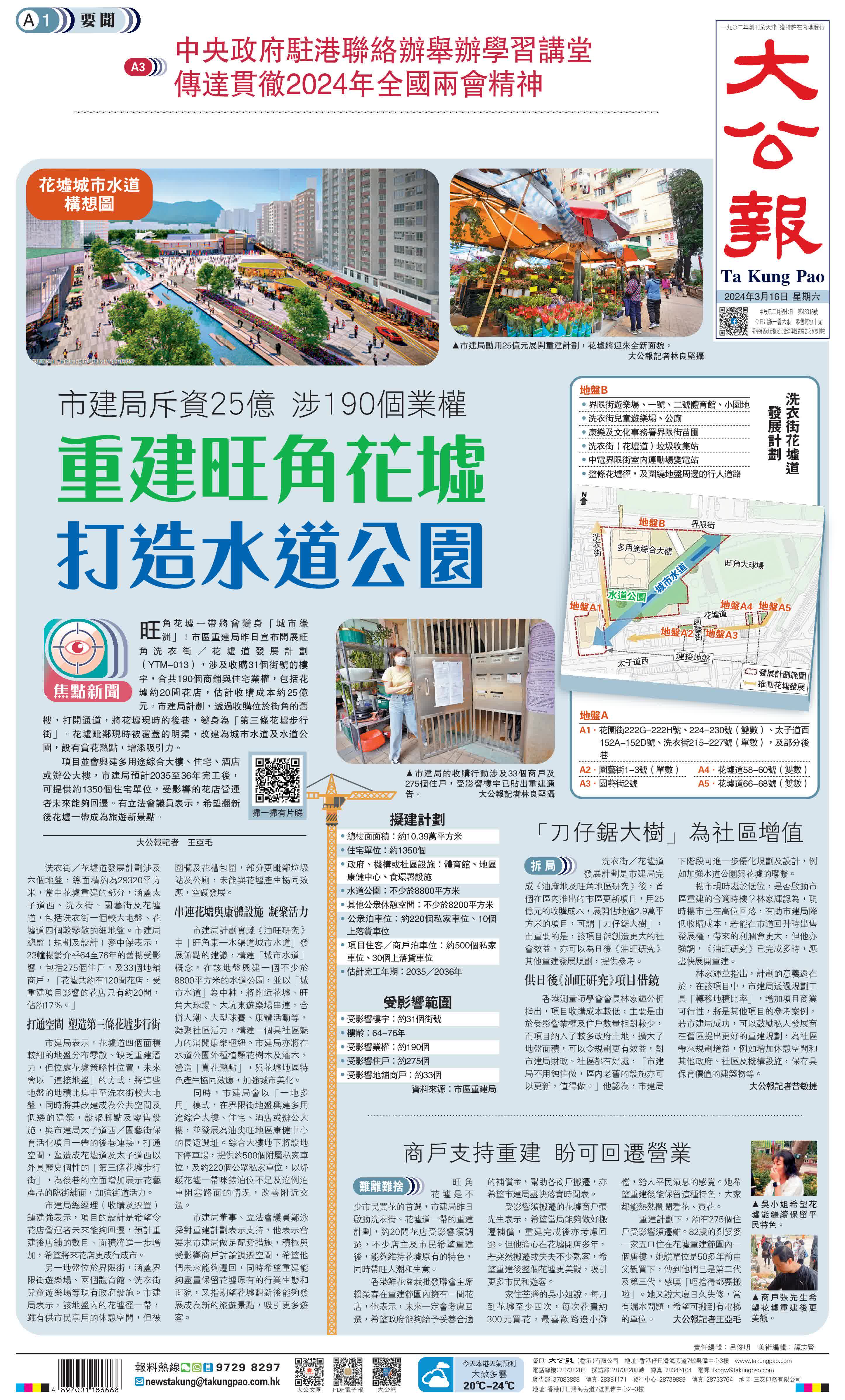 (大公報記者 王亞毛)旺角花墟一帶將會變身「城市綠洲」!市區重建局昨日宣布開展旺角洗衣街/花墟道發展計劃(YTM-013),涉及收購31個街號的樓宇,合共190個商舖與住宅業權,包括花墟約20間花店,估計收購成本約25億元。市建局計劃,透過收購位於街角的舊樓,打開通道,將花墟現時的後巷,變身為「第三條花墟步行街」。花墟毗鄰現時被覆蓋的明渠,改建為城市水道及水道公園,設有賞花熱點,增添吸引力。