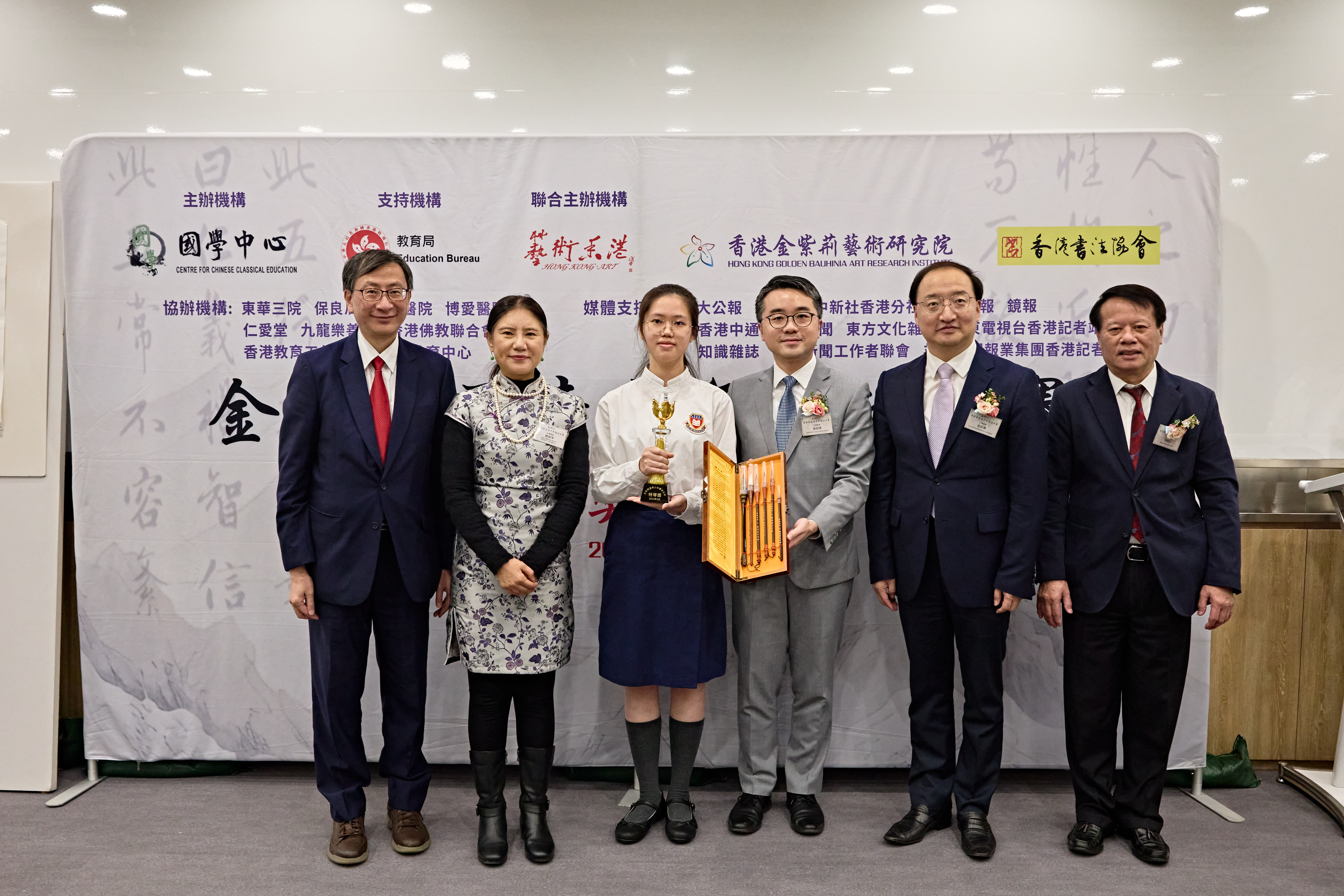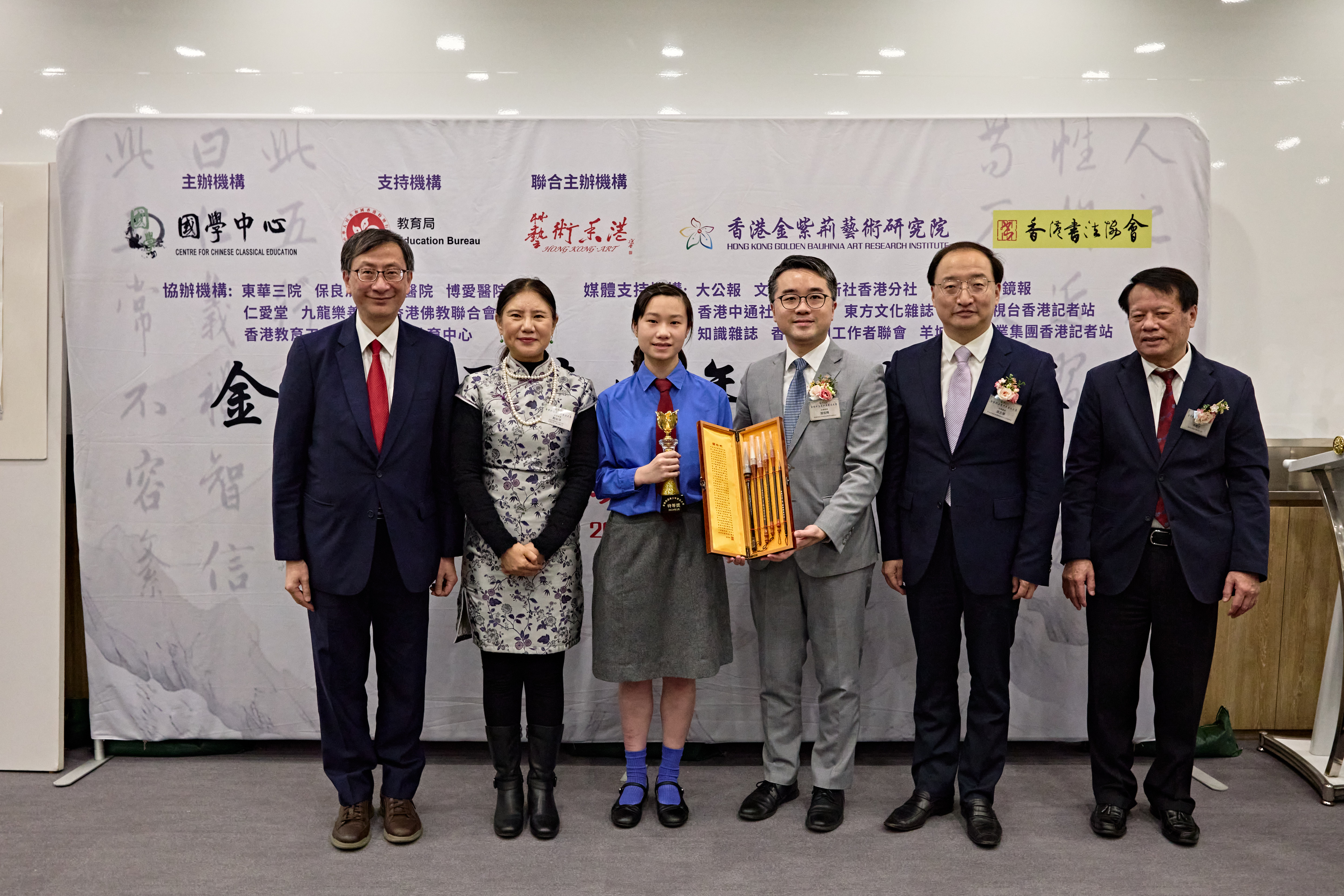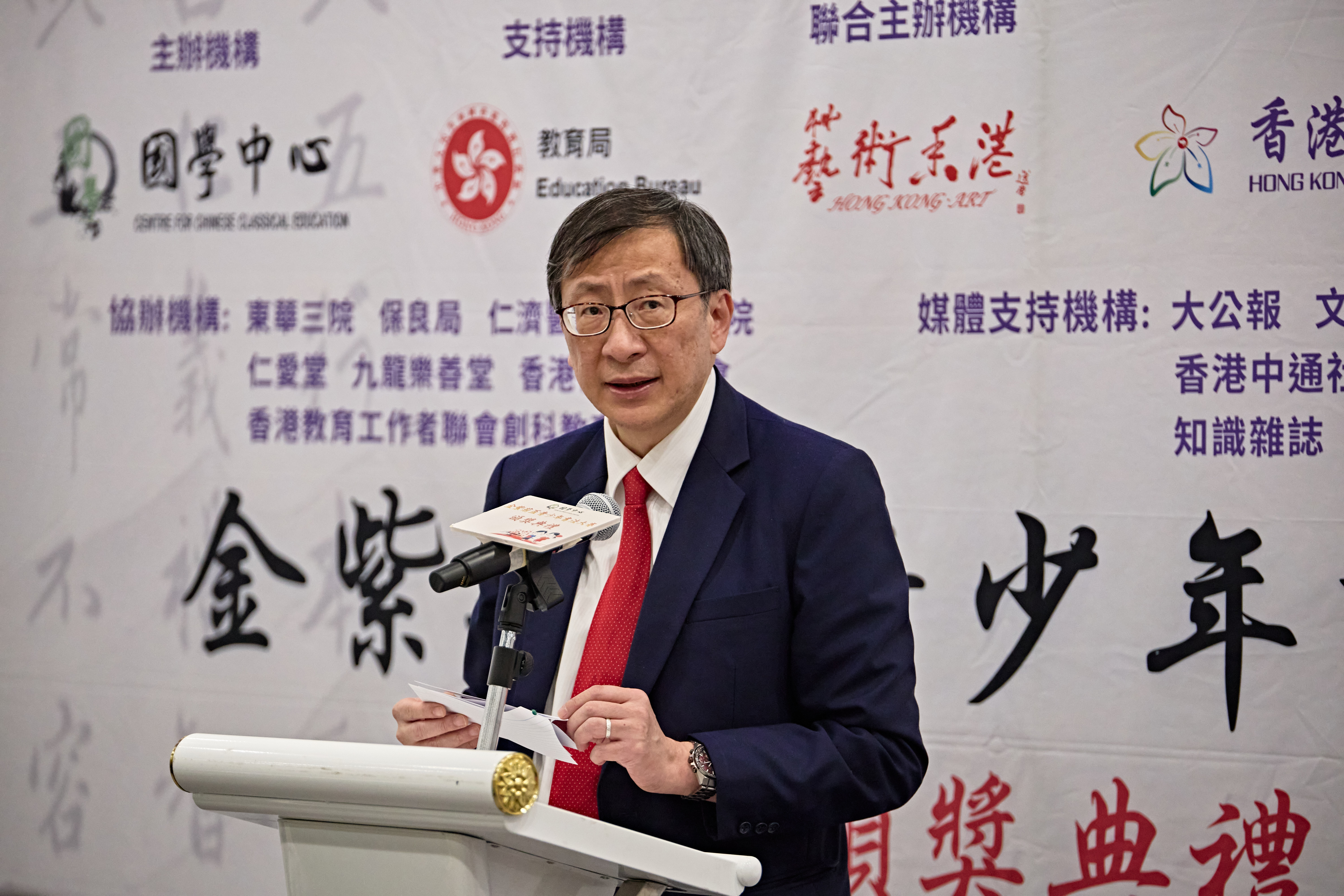 (大公文匯全媒體記者 金文博)為向青少年推廣中華優秀文化及推動書法研習,由香港教育大學主辦的金紫荊盃青少年書法大賽頒獎典禮今日(16日)舉行,全國政協委員、香港教育大學校長李子建、香港特區政府教育局副局長施俊輝、中央政府駐港聯絡辦青年工作部部長張志華、馮燊均國學基金會主席鮑俊萍、藝術香港發展委員會主席岑醒文擔任主禮嘉賓。