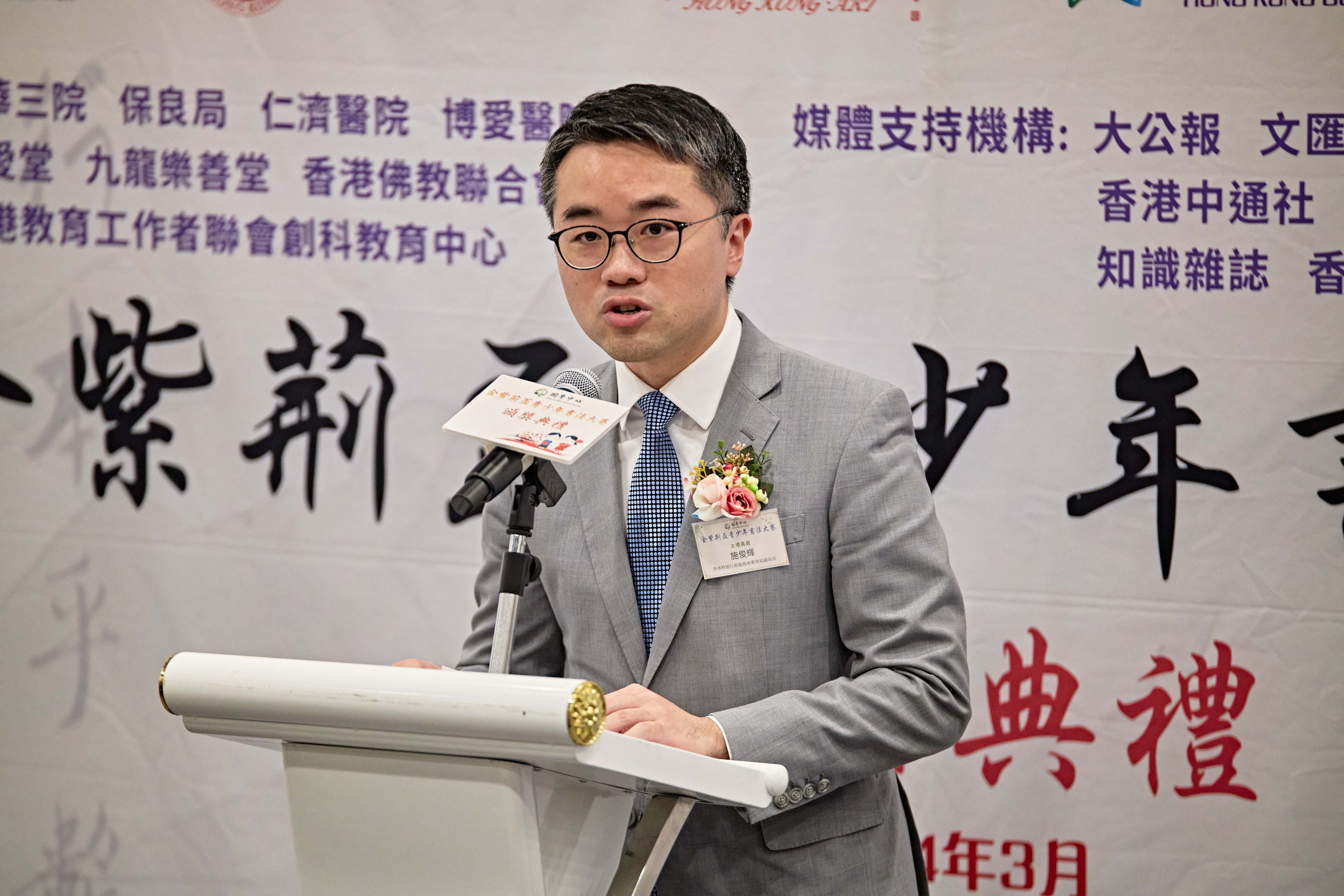 施俊輝致辭指出,書法不僅是中國優秀傳統文化的重要組成部分,亦是一項能陶冶個人情操的文化活動,這次書法比賽要求用毛筆書寫《三字經》,有助於推動學校踐行中華傳統文化,啟發同學理解國學內涵,讓參賽者認識中華優秀文化的精神價值,建立正面的人生觀。