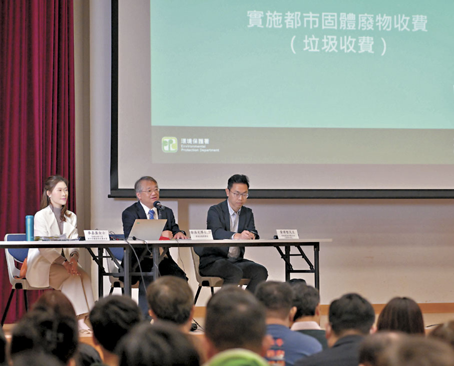 為加強與業界及市民的解說,環保署日前在禮頓山社區會堂為地區服務及關愛隊伍舉辦首場簡介會。在簡介會上,環保署署長徐浩光向關愛隊成員講解垃圾收費的最新推行安排,以及實施第一階段管制即棄膠餐具和其他塑膠產品的細節。其間,徐浩光聽取了關愛隊成員對垃圾收費各項準備工作和相關減廢回收措施的意見。他表示:「政府推行垃圾收費的原意是希望鼓勵各界珍惜資源,積極落實源頭減廢及乾淨回收,從而減少整體都市固體廢物棄置量。推行垃圾收費絕不是因為政府希望藉此帶來額外收入,亦非旨在懲罰市民。」