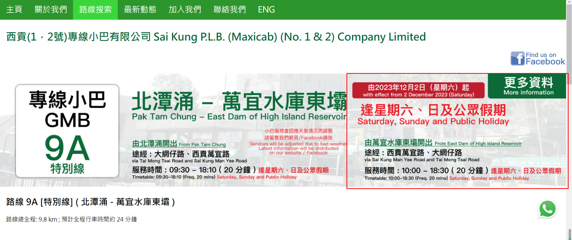 翻查資料,東壩屬於限制區範圍,未經許可的車輛不得進入。在此範圍通行的公共交通目前只有新界專線小巴第9A號線,由北潭涌往返萬宜水庫東壩。據運輸署網站顯示,該條線路僅星期六、星期日及公眾假期運行,20分鐘一班車,每班車只能乘搭約19位乘客;全程收費11.9元,其中由萬宜水庫東壩開出的小巴最晚服務時間為晚上6時30分,如果沒趕上末班小巴的話,只能選擇乘搭的士或徒步走到北潭涌。