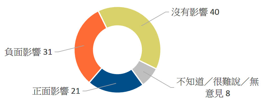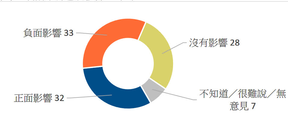 至於《維護國家安全條例草案》對香港未來經濟前景的影響,同樣有六成受訪者認為有「正面影響」(32%)及「沒有影響」(28%),表示「負面影響」的佔三成三,「不知道/很難說/無意見」則佔百分之七。