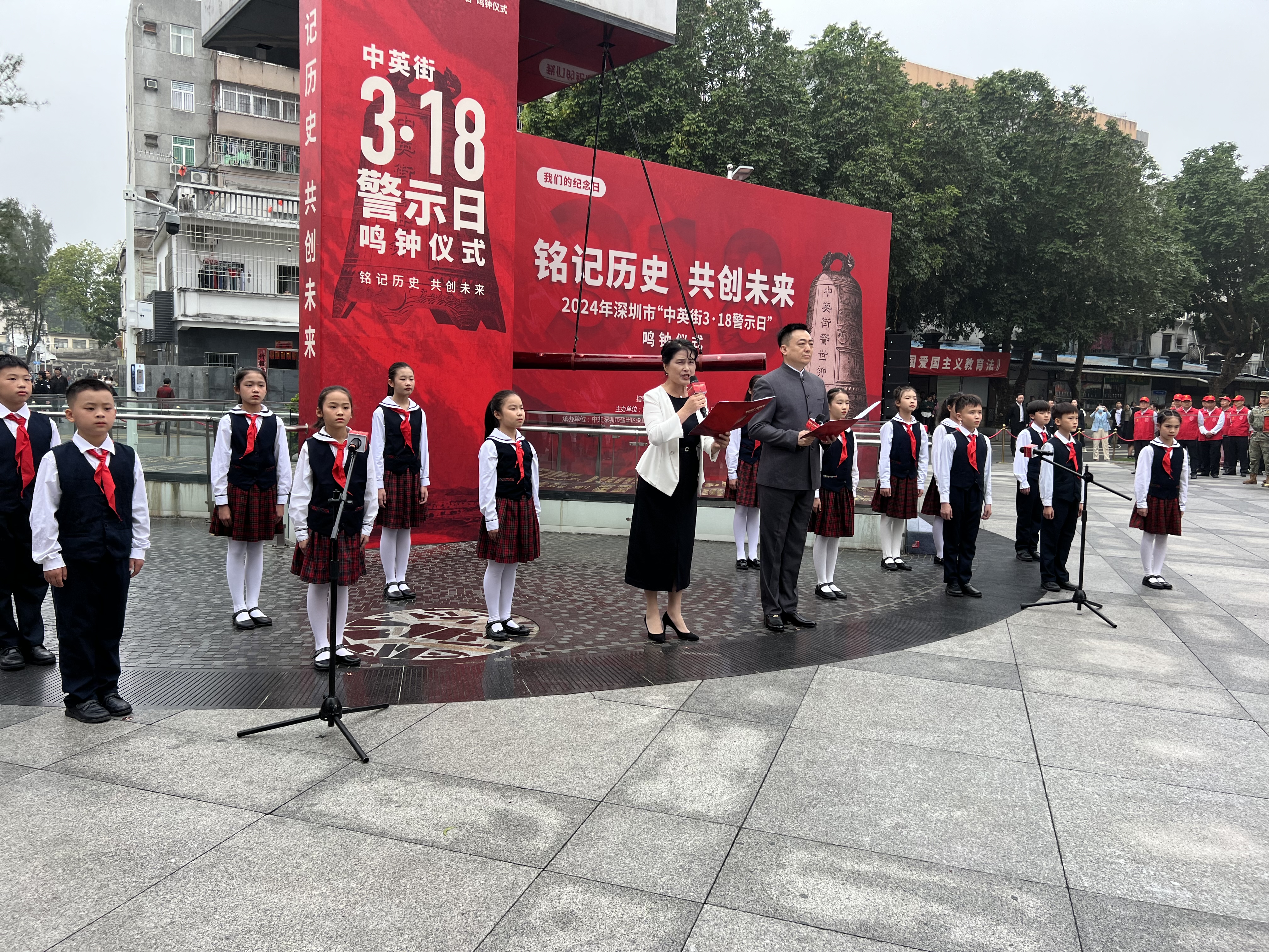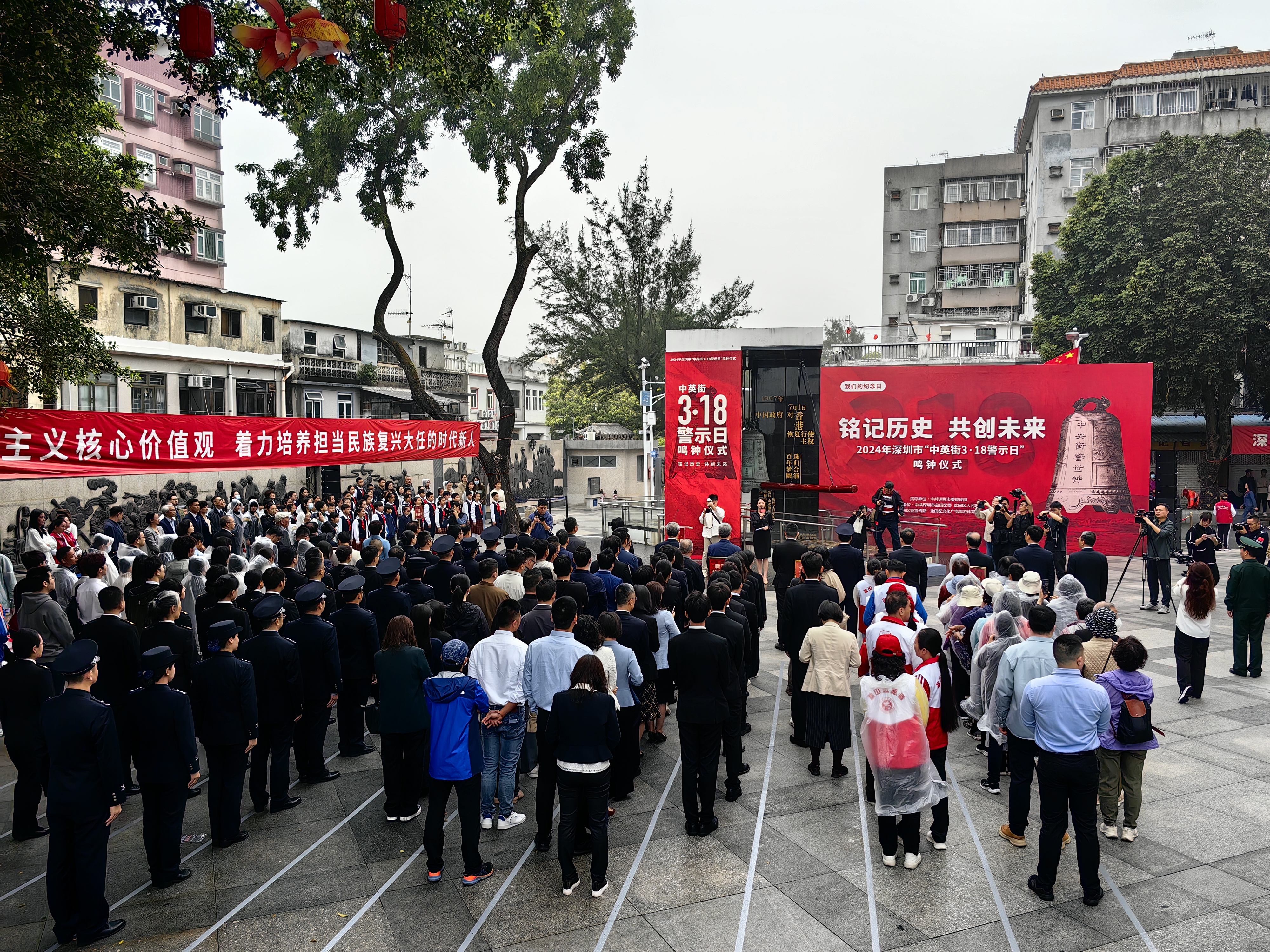(大公文匯網 記者 郭若溪)「鐺、鐺、鐺……」沉重莊嚴的敲鐘聲響起,18聲低沉悠遠的鐘聲在中英街歷史博物館廣場回蕩。3月18日,由中共深圳市委宣傳部指導,鹽田區委、區政府主辦,鹽田區委宣傳部、區文化廣電旅遊體育局、中英街管理局承辦的第23屆「中英街3·18警示日」鳴鐘儀式在中英街歷史博物館廣場舉行,深港兩地群眾代表逾150人參加了活動。