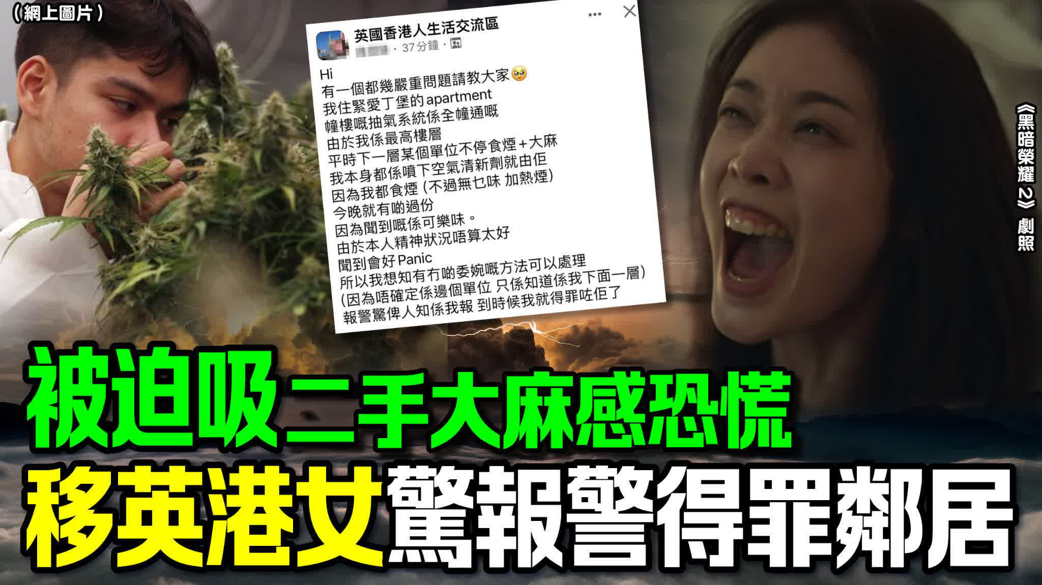 大公文匯全媒體報道,英國毒品問題愈發嚴重,而大麻是英國最多人吸食的非法毒品。近日有移英港女大呻住正係「毒樓」,指住自己樓下某個單位以往已不停傳出煙味和大麻味,最近更傳出「可樂(可卡因)味」 ,令原本已精神不振的她感到十分恐慌,驚報警會得罪對方喎。