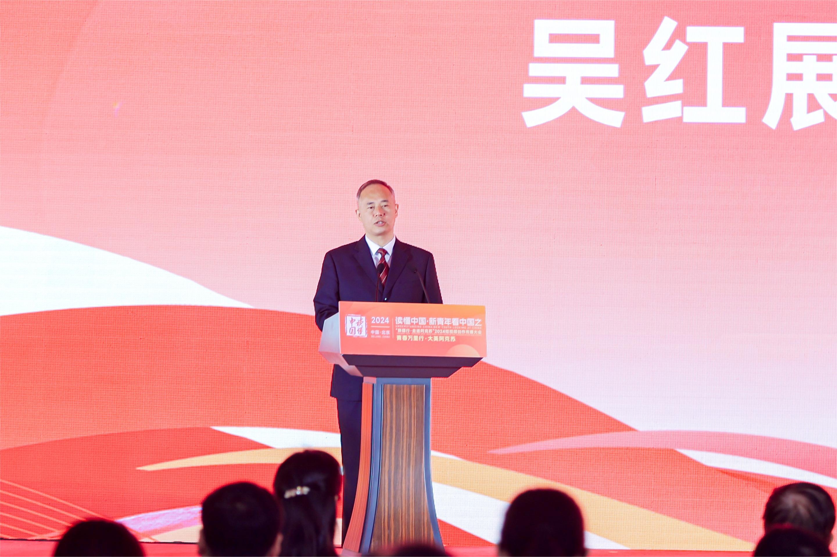 阿克蘇地委書記吳紅展從地理環境、歷史資源、文化教育、產業格局等方面介紹阿克蘇的多元發展,並熱忱歡迎廣大短視頻創作者來到阿克蘇,用宏闊的創作視野和生動的創作方式解鎖阿克蘇的人文之美、山河之美、發展之美。