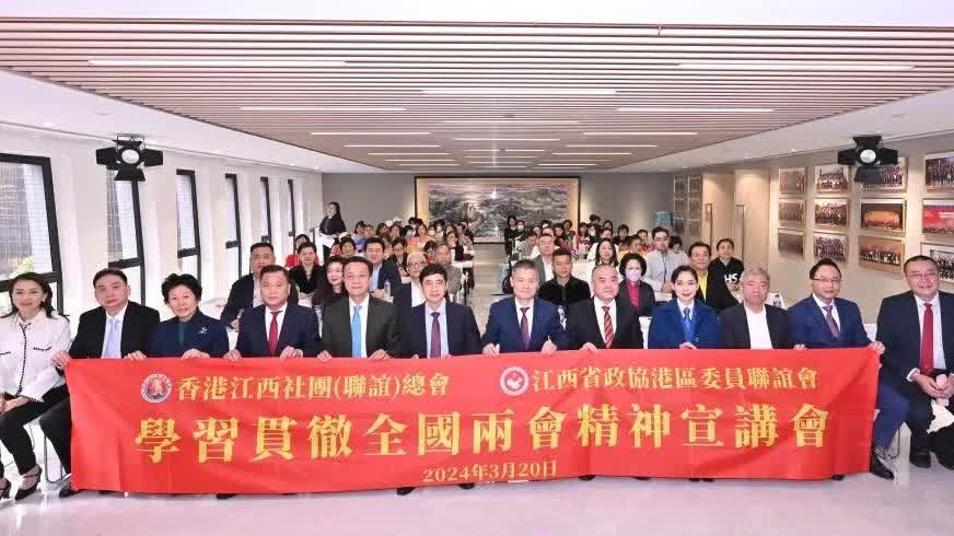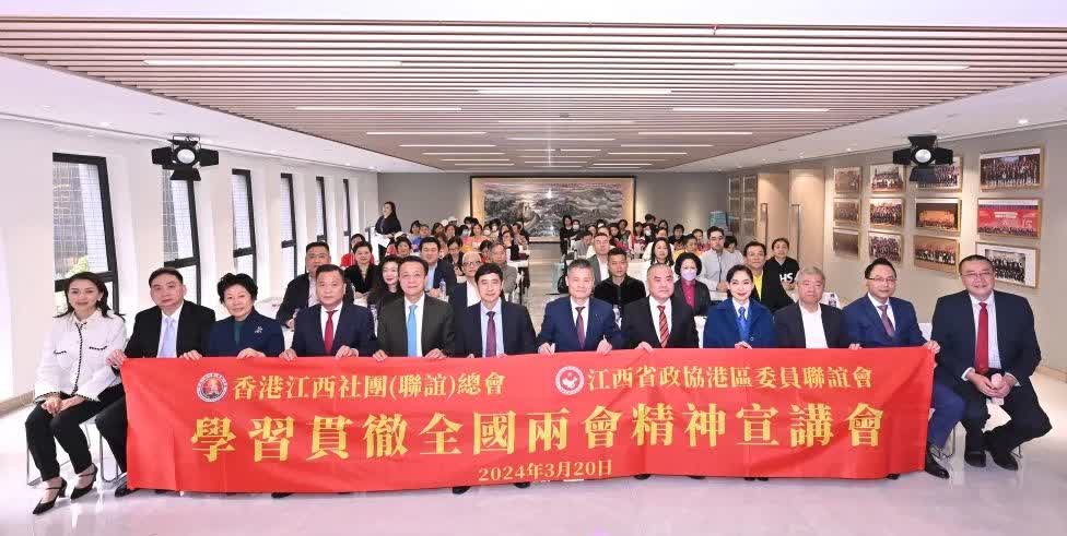 大公文匯網報道,3月20日下午,為深刻理解、全面掌握「兩會」精神,增強大家對國家發展大局和「一國兩制」的認識,香港江西社團(聯誼)總會與江西省政協港區委員聯誼會聯合舉辦「學習全國『兩會』精神宣講會」,此次宣講會邀請了出席「兩會」的部分代表為從不同的角度進行講解、分享和學習「兩會」精神。
