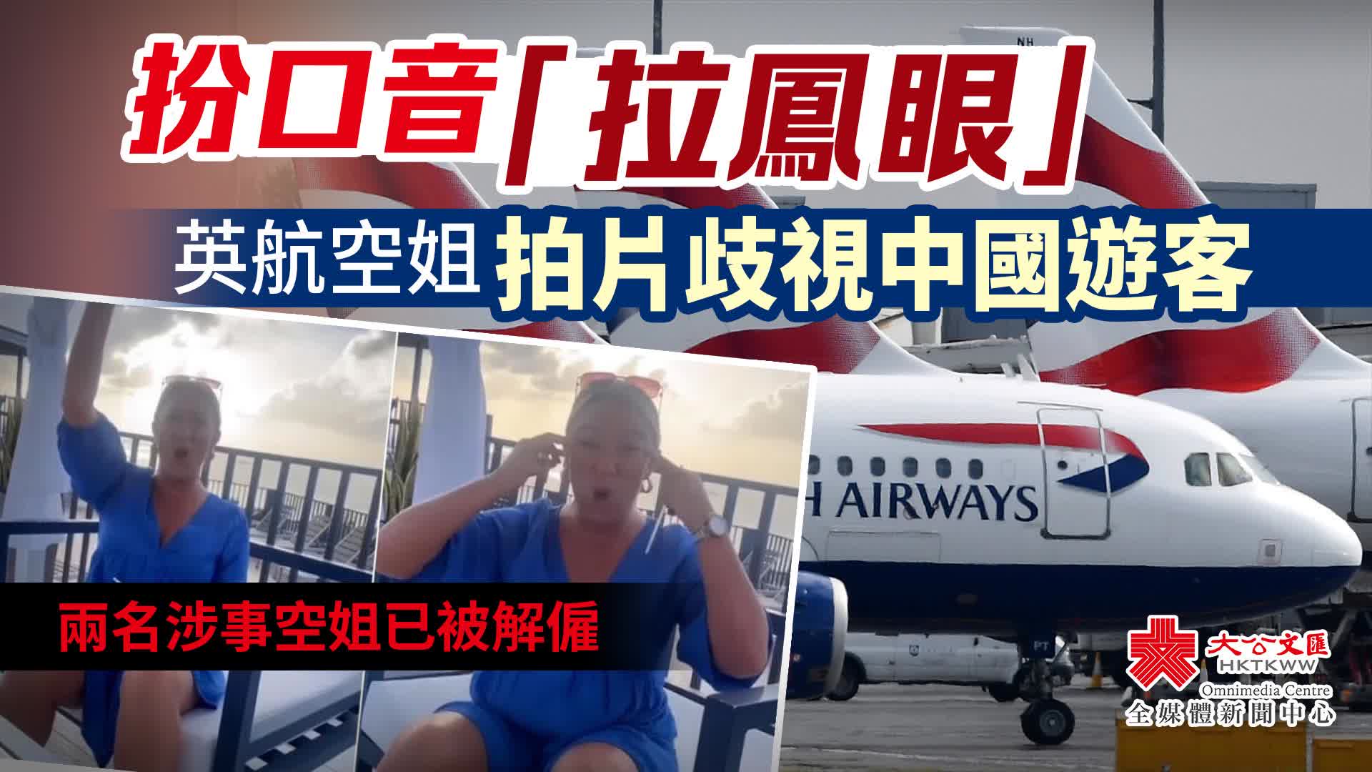 香港文匯報報道:英國航空公司(British Airways)兩名空姐日前拍攝了一條公然歧視亞裔乘客的影片,在社媒TikTok惹來一片批評聲。影片中一名空姐模仿中國乘客口音,還用手做出「拉鳳眼」歧視動作。兩人的同事表示,她們顯然在嘲諷曾在機上遇到、一個英語不流利的中國家庭。兩名涉事空姐已被解僱,英航強調公司不會容忍任何形式的種族主義。