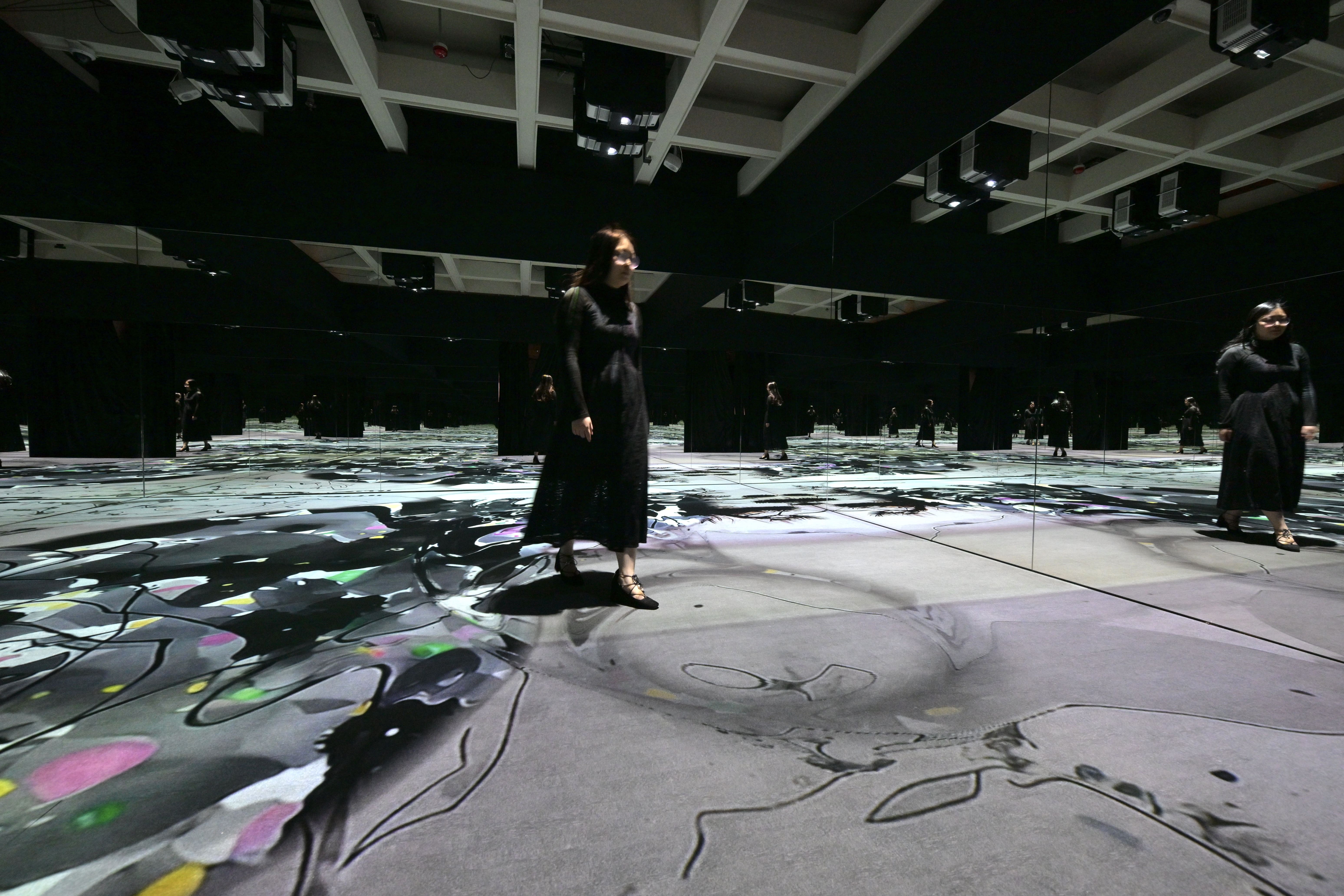 跨界系列:「吳冠中×張瀚謙」項目中,香港藝術家張瀚謙受吳冠中筆下的瀑布系列作品啟發,創作了《瀑林》場域特定藝術裝置。這作品以降雨量數據作指引,由機械裝置將水引至半空再滴落特製畫布上,幻化成的「墨跡」組成一幅幅動態水墨瀑布。而由他與他的藝術團隊XCEED創作的作品《若水》,以人工智能分析及學習過百幅吳冠中畫作後,對觀眾的作品進行加工,生成具吳冠中風格和筆觸特色的專屬畫作。
