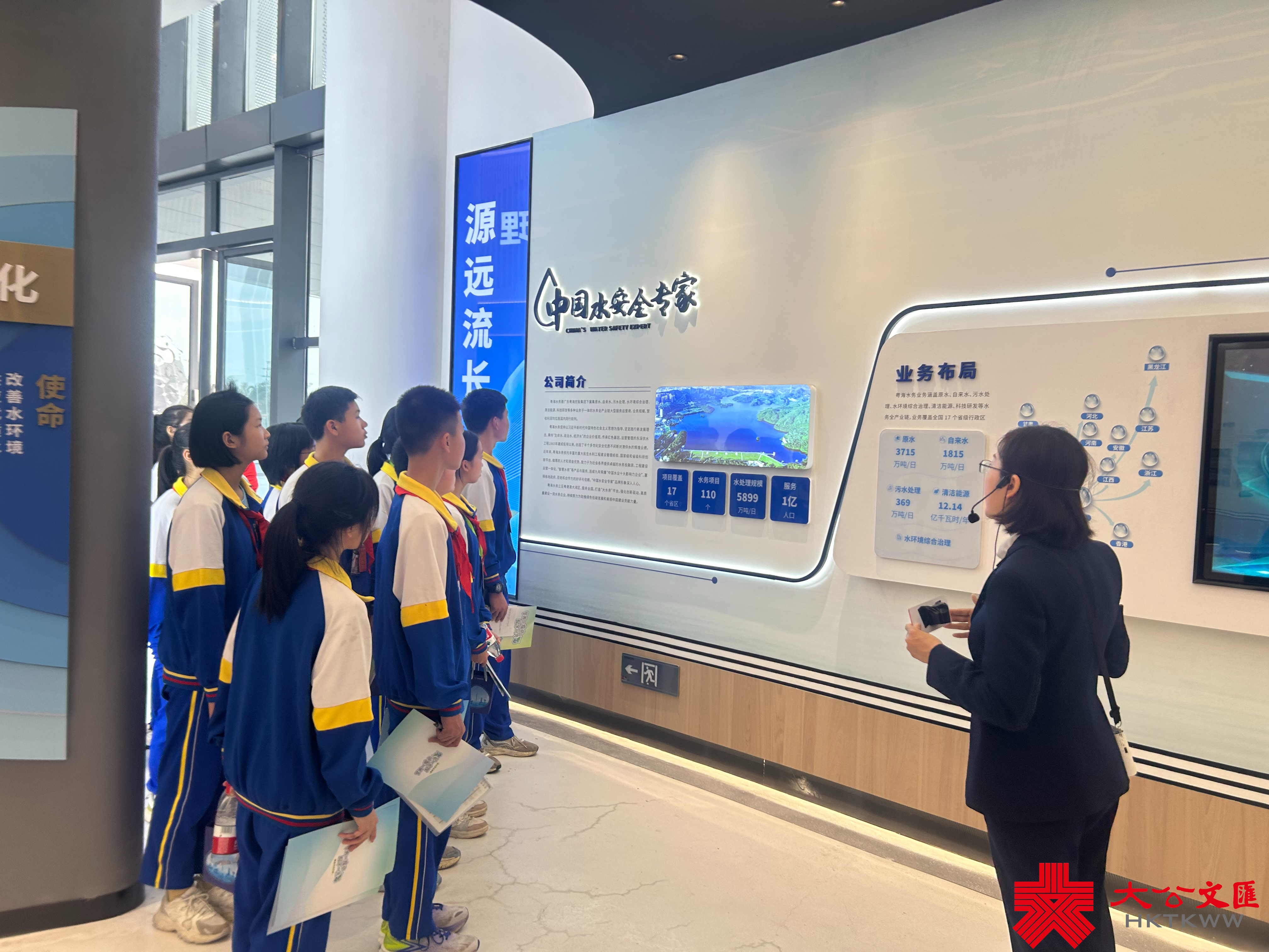 今年1月30日,珠江三角洲水資源配置工程正式通水,將保障粵港澳大灣區3200萬人的用水安全,同時,將為香港提供10立方米每秒的備用水源。當天,珠三角水資源配置工程展覽館、粵海水務企業主題展廳揭牌,該展覽館是面向社會公眾尤其是青少年群體免費開放的工程水情教育基地,展現水情概況、工程特點、管理文化、建設歷程等內容。