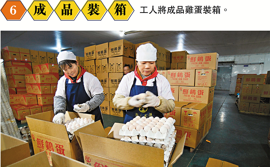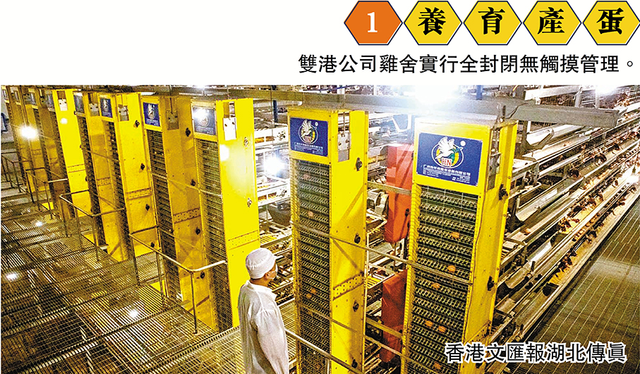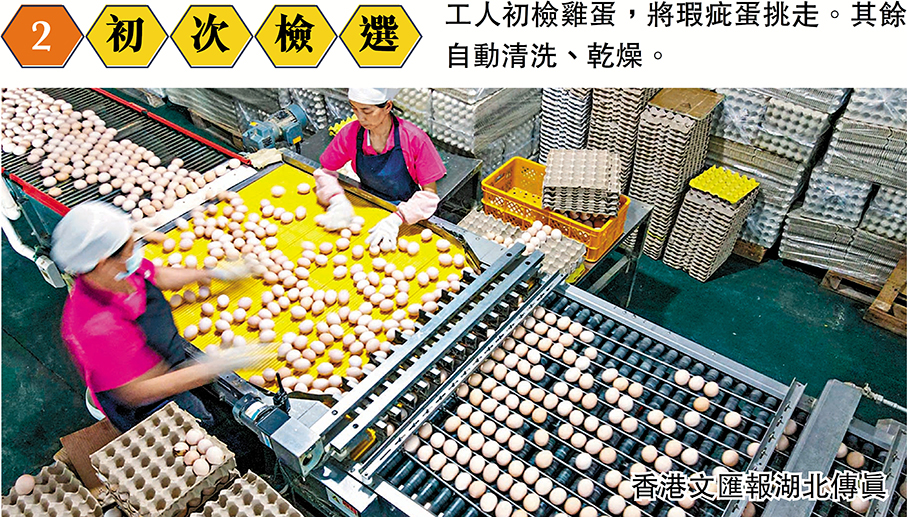 (香港文匯報記者 歐陽思柔 湖北報道)噠噠噠噠……湖北雙港農業科技貿易股份有限公司的封閉式雞舍裏,傳輸帶有節奏地運轉着,一顆顆還帶着溫度的新鮮雞蛋從雞舍裏不斷運送到工人面前。經過檢測、清洗、殺菌、分揀、打包、裝車一系列嚴謹的環節之後,這些來自湖北的雞蛋在15至48小時內將源源不斷地入境香港、澳門,陸續在超市、街市新鮮上架。