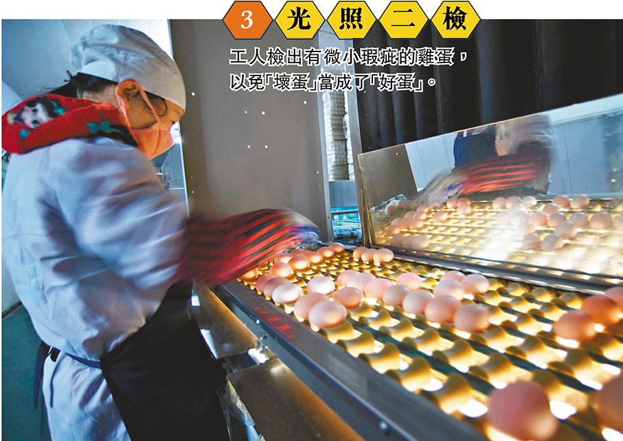 鮮雞蛋的分解包裝環節,經過「消毒」的記者一行獲准現場參觀。