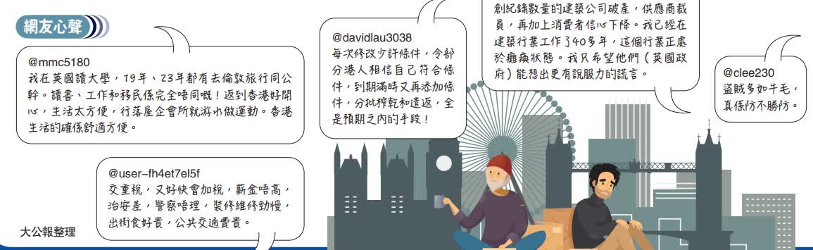 有移英港人拋棄香港穩定的工作和生活,去到英國才發現一切都要從頭來過。有網民稱,認識朋友在香港月入5萬多,到英國只剩下「cheap工(薪金低的工作)」聘請他,所以捱了兩年還是返回香港。