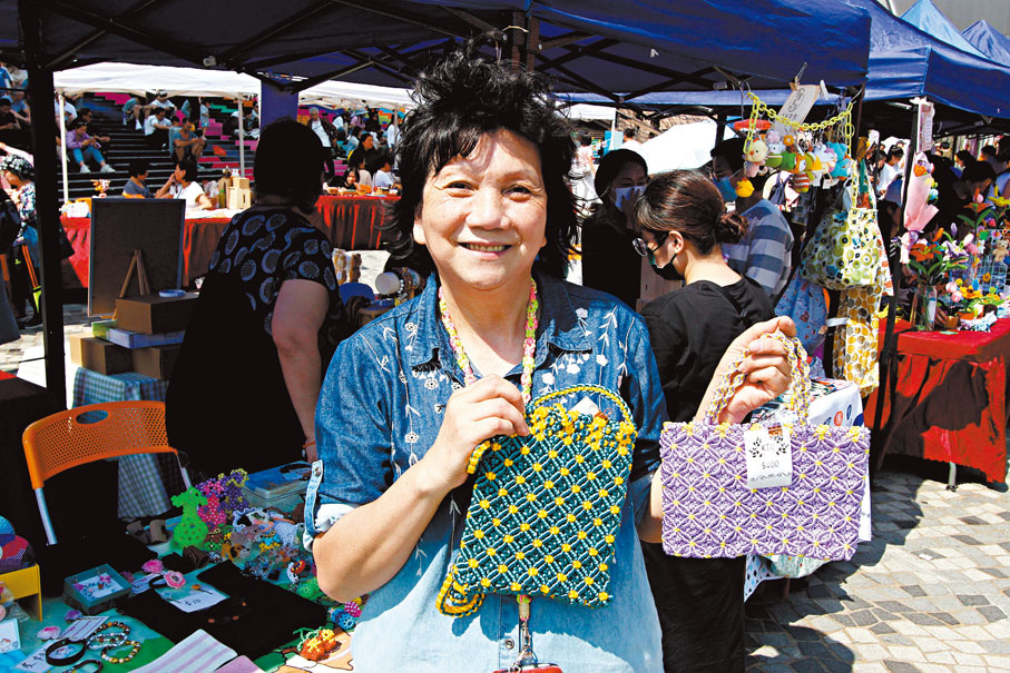 杜女士介紹,每一個小手袋都需要編織四五小時,「這個市集我們期待了很久,因為這次設市集的地點是在很市中心、吸睛的地方,我們花了逾三星期去準備這些手作品。」她說,很多編織技藝都是從網上學習而成,「看網上的視頻跟着學,當成功編織出來後會很有成就感。我希望這些由自己親手編織的產品能讓更多人看到,並同時推廣這些手工技藝。」