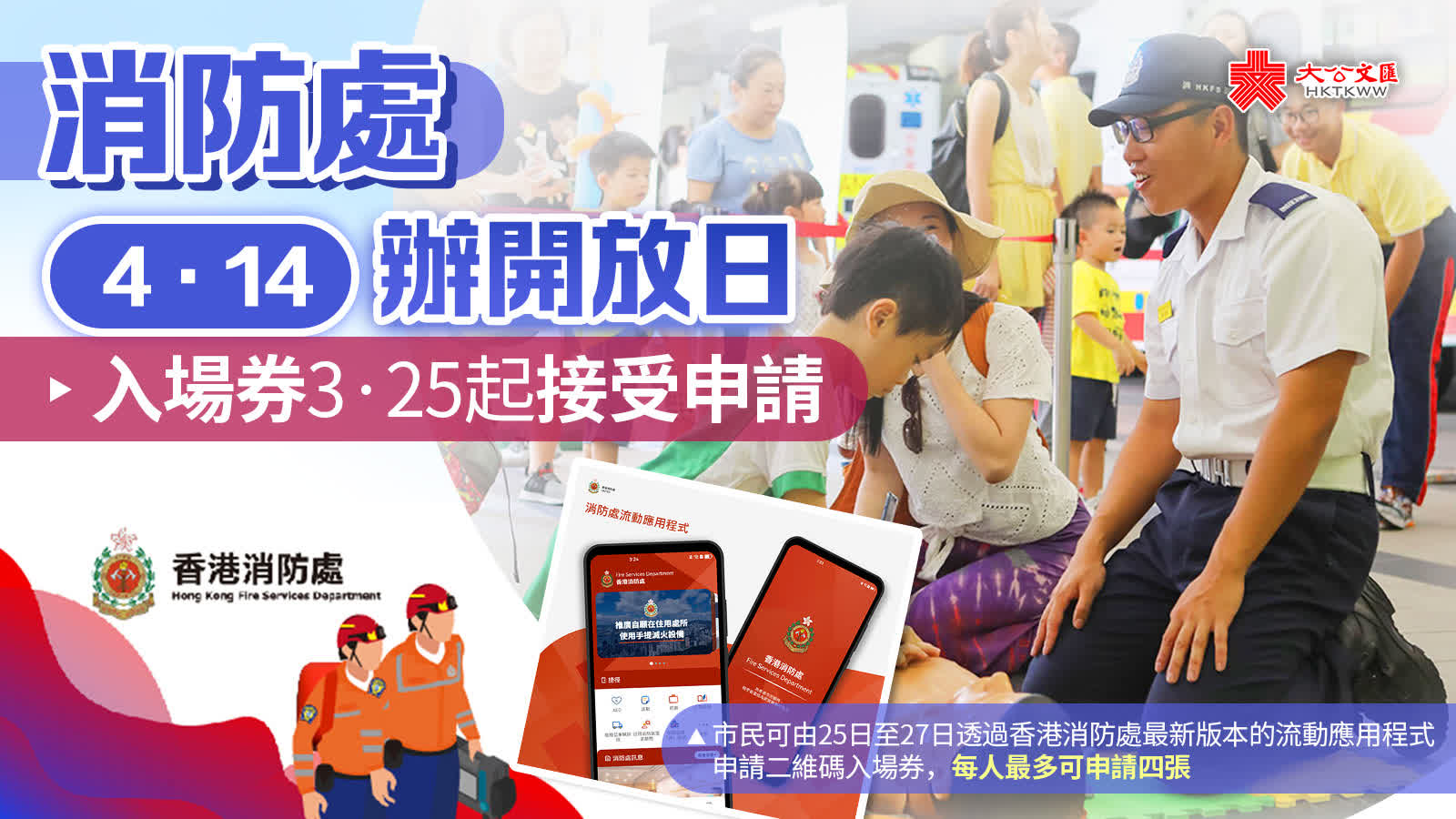 有興趣的市民可由今日(25日)起至27日透過香港消防處最新版本的流動應用程式(可於Apple App Store、Google Play及華為AppGallery平台免費下載)申請二維碼入場券,每人最多可申請四張。電腦抽籤結果將於4月2日經香港消防處流動應用程式通知中籤者。