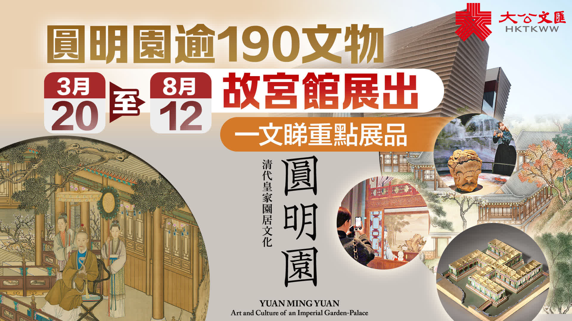 香港故宮文化博物館公布2024年的全新展覽陣容,主題豐富多樣,策展角度創新,展品精彩紛呈,引領廣大觀眾探索中華和世界文化藝術的魅力。香港故宮於2024年呈獻的首個大型特別展覽為「香港賽馬會呈獻系列:圓明園——清代皇家園居文化」,展覽將展出逾190件與圓明園相關的重要文物,涵蓋書畫、器物、燙樣(建築模型)等,重現這座清代著名皇家園林昔日輝煌。