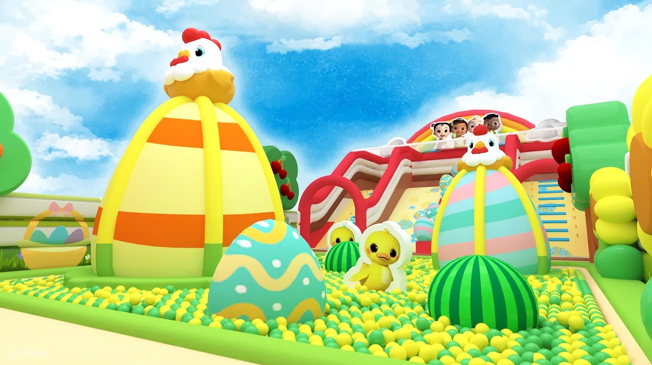 MCP CENTRAL(新都城中心2期)打造逾3000呎的「CoComelon」復活淘「氣」派對。吹氣樂園特設3大遊樂區,包括首次登場的巨型復活「搗」蛋波波池,7米高的「童」伴吹氣滑梯飛,蘋果投「摘」區考考眼界。