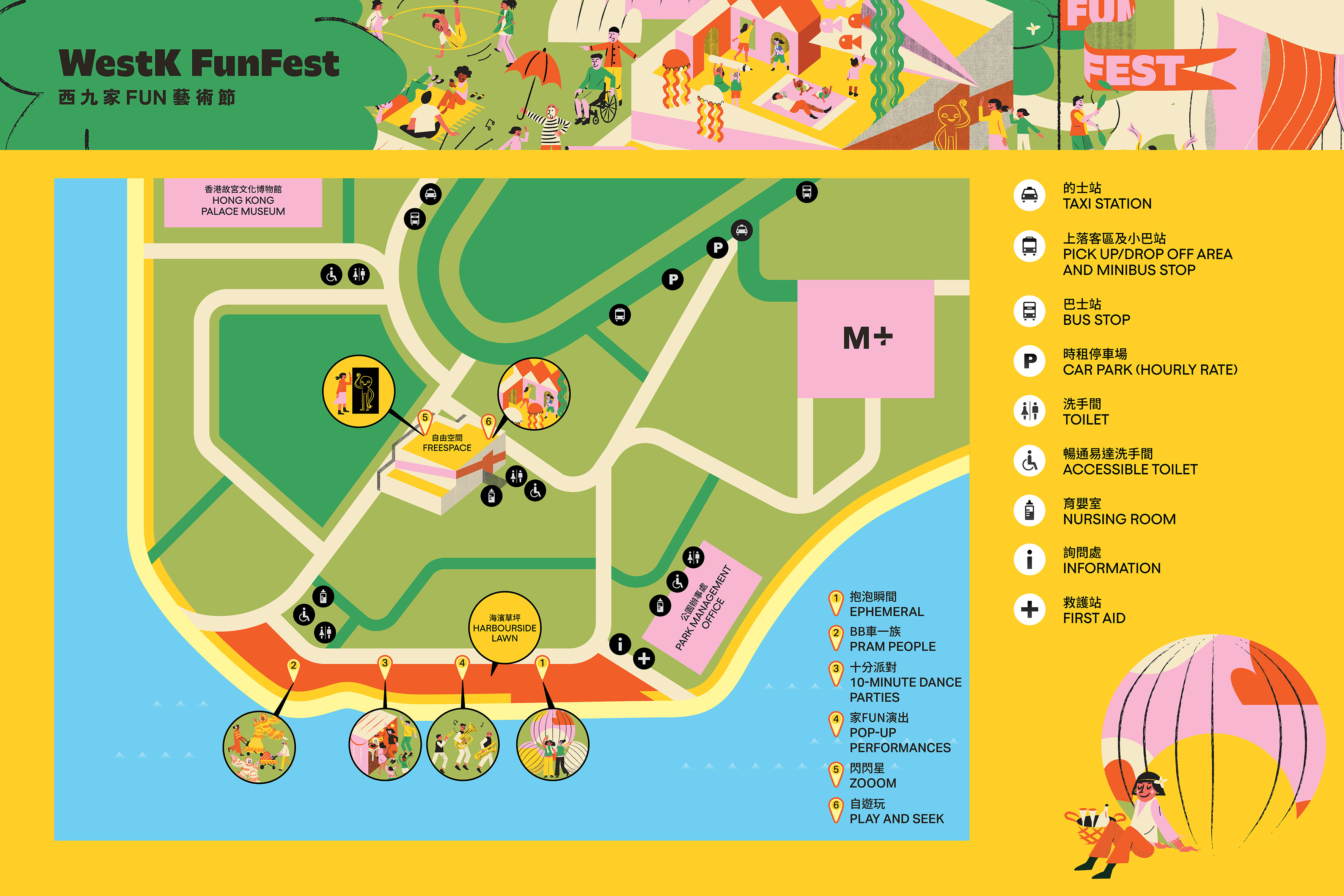 西九文化區管理局一連三個星期橫跨復活節假期,於西九文化區藝術公園海濱草坪、自由空間及戲曲中心等多個戶外和室內場地,呈獻首屆「西九家FUN藝術節」。藝術節雲集多位本地及國際知名藝術家呈獻超過150場藝術體驗,包括觀眾參與式演出、互動體驗、跨媒介表演、工作坊、巨型藝術裝置、遊樂空間、故事劇場及舞蹈派對等。