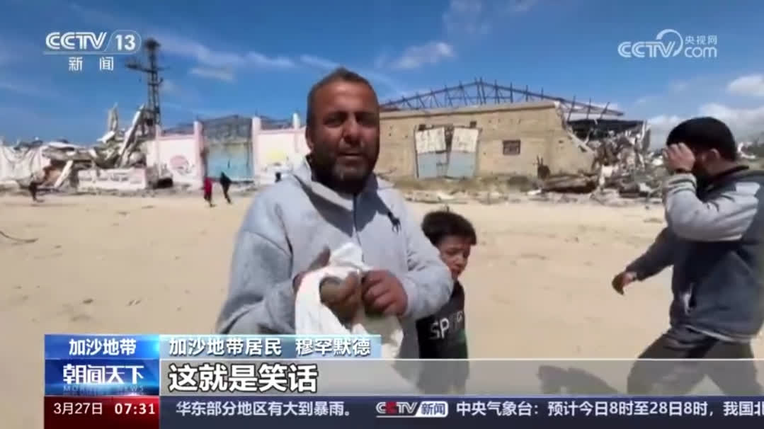 飢餓的人群擠在海灘上,冒着生命危險爭搶一點吃的。他們說:「我們的情況很可悲,沒有食物沒有水,面對饑荒我們能做什麼呢?」