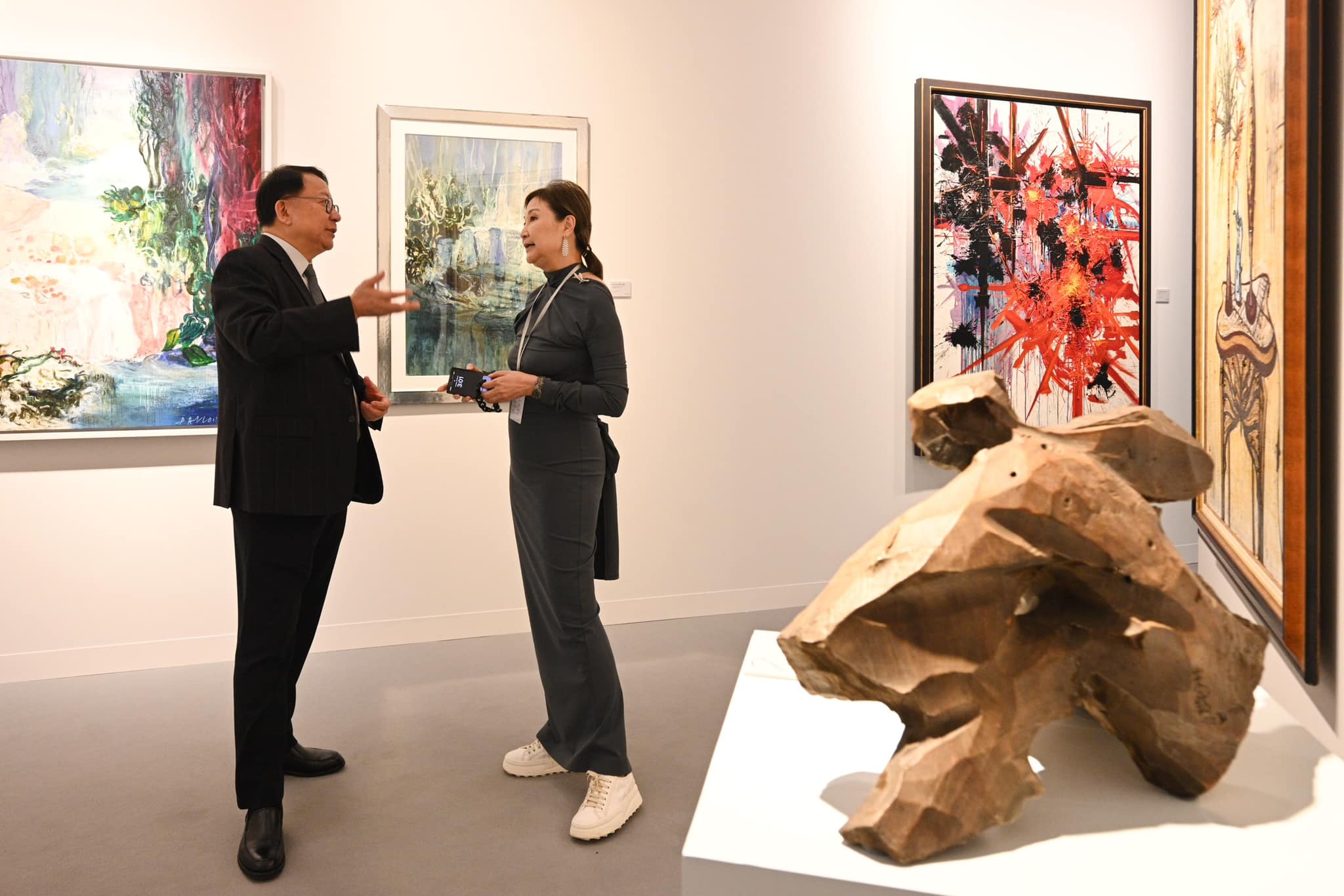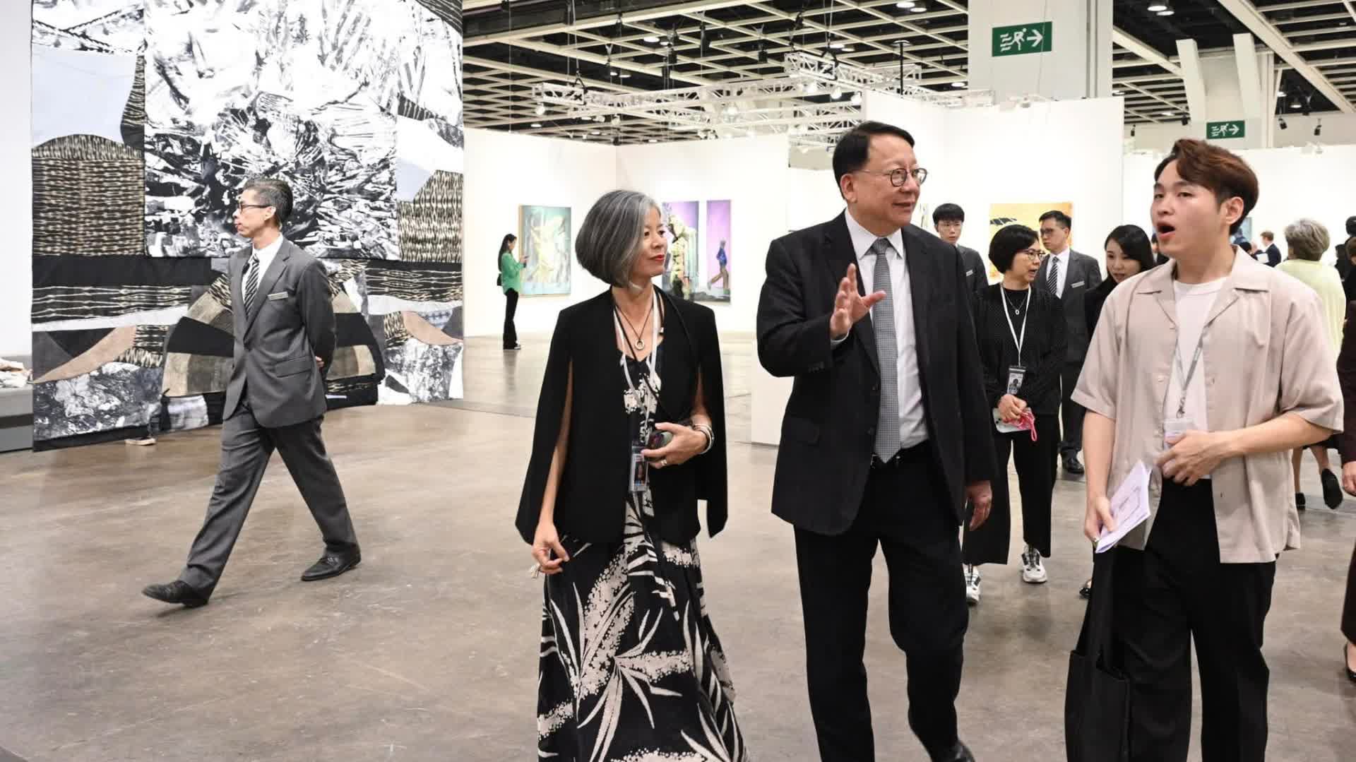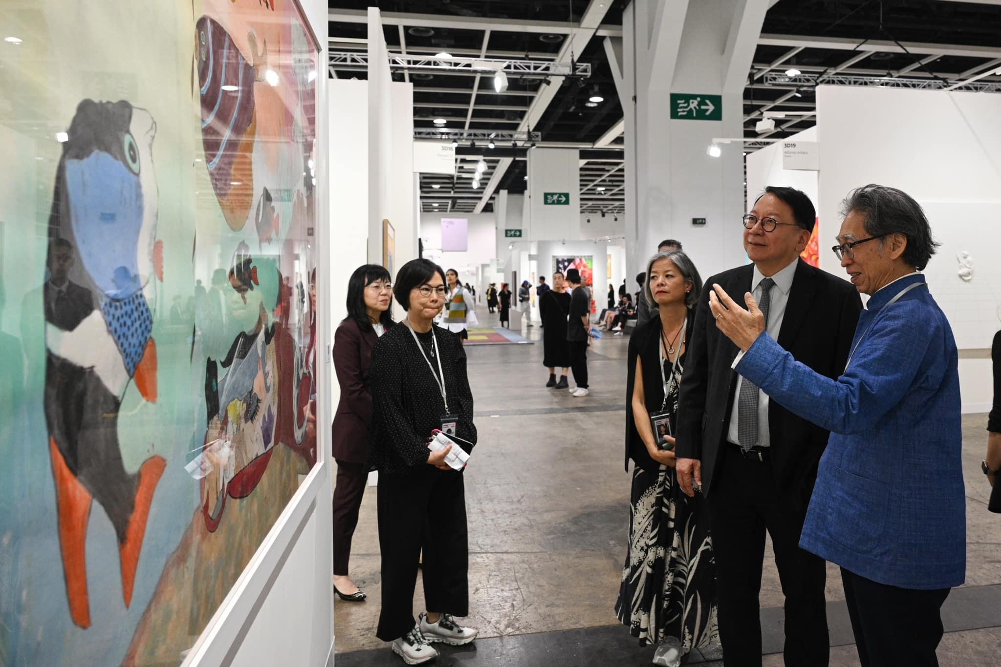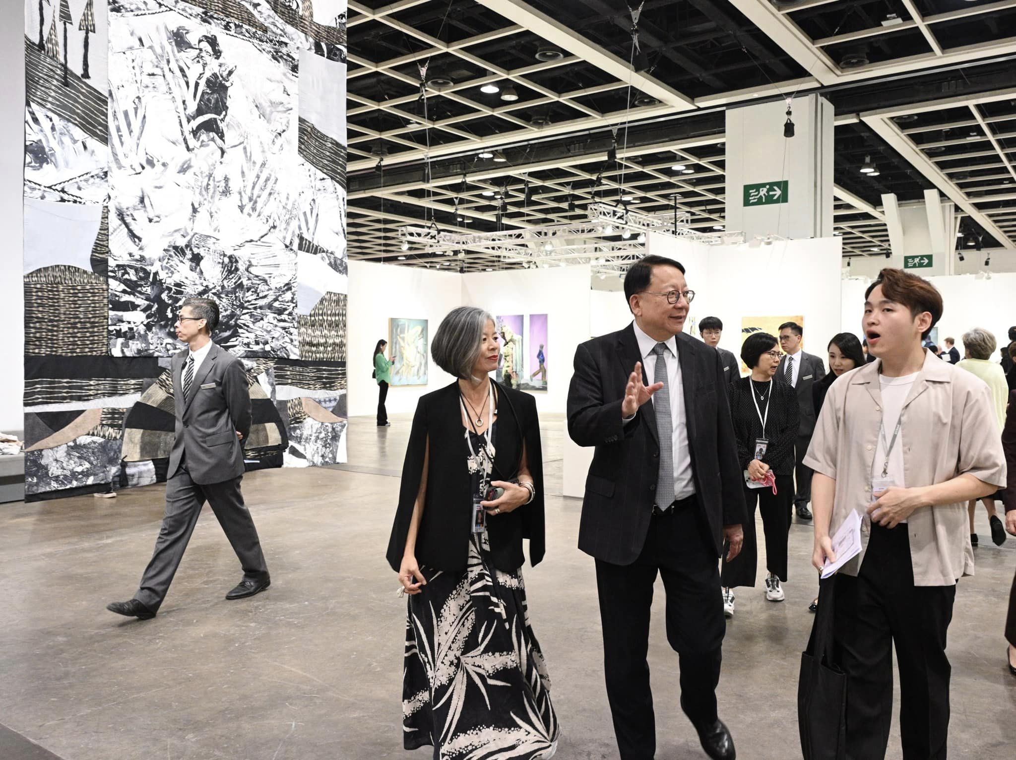 陳國基說,很高興聽到主辦方說,去年因為香港剛與世界各地恢復全面通關,展會規模比以往小,而今年展會規模已全面復常,匯聚超過240間國際頂尖藝廊最高質素的藝術作品,既有20世紀藝術大師經典之作,也有當代知名和新晉藝術家的大量精彩作品。各界反應相當熱烈,門票暢銷,足見展會深受歡迎。