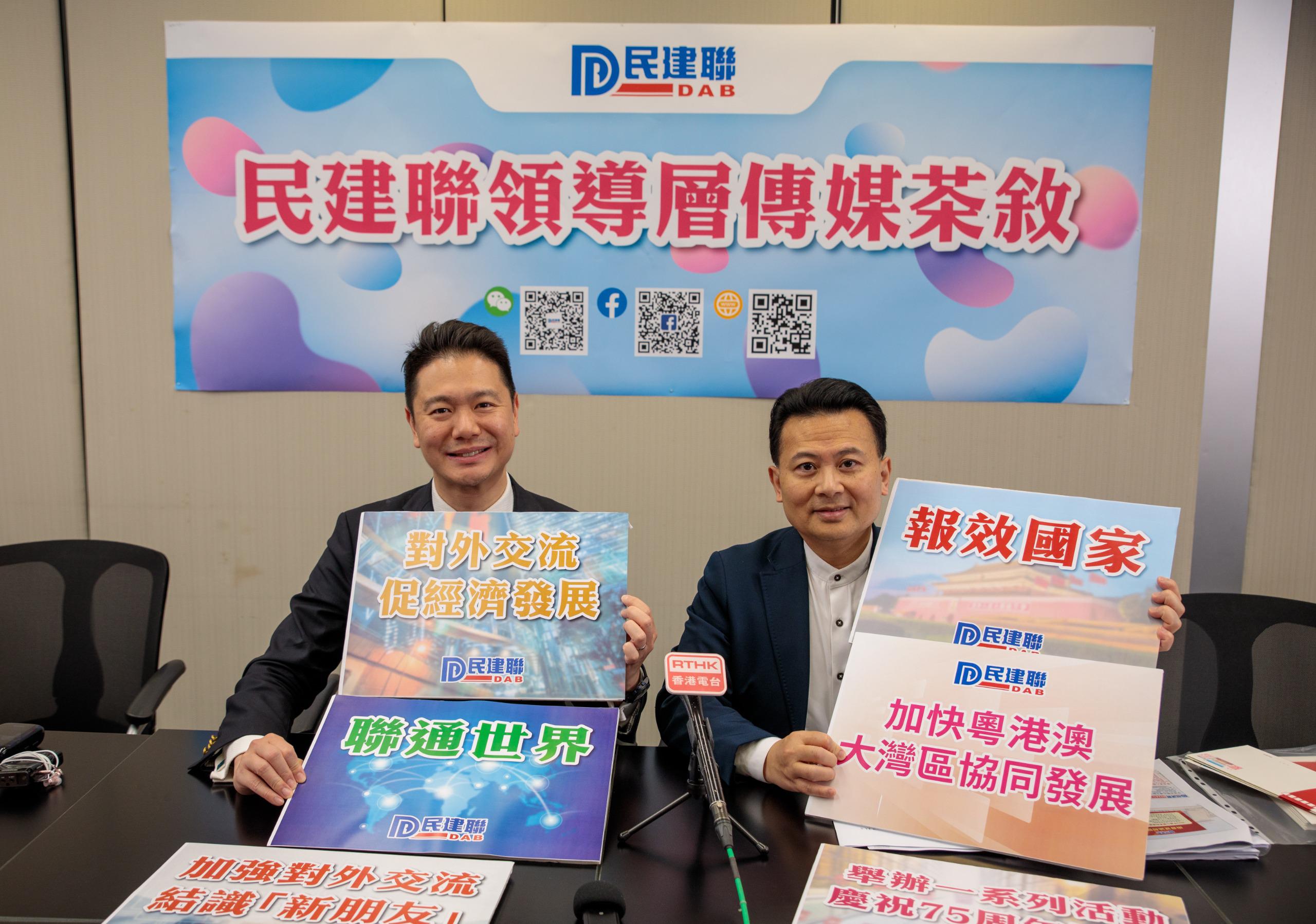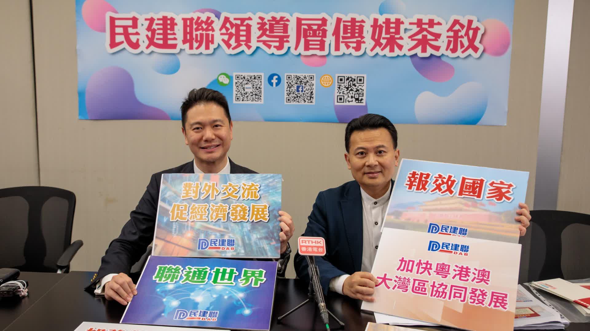 大公文匯全媒體報道,民建聯以「提升自我、建設香港、報效國家、聯通世界」為四大工作目標,其中負責「報效國家」及「聯通世界」事務的副主席陳勇及周浩鼎,今日(27日)與傳媒茶敘分享工作重點。