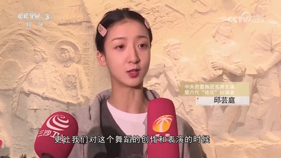 中央芭蕾舞團首席主演、第六代「瓊花」扮演者 邱芸庭:特別地開心,特別地興奮,終於見到「娘家人」了,以前老一些的照片和一些雕塑,更讓我們對這個舞蹈的創作和表演的時候是更有情感加進去的,也從她們的身上學到那種很頑強的精神。
