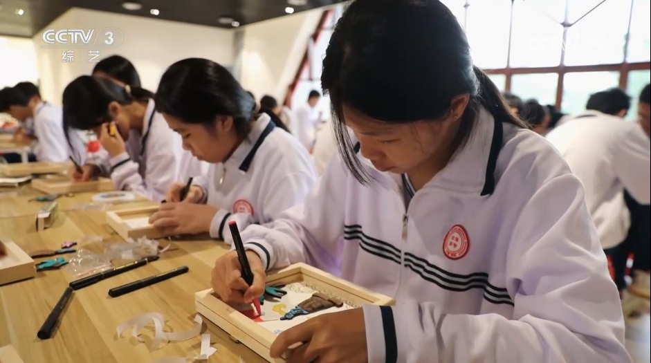 在紀念館的二樓,無論是遊客還是來研學的學生都可以體驗製作這樣的一幅關於紅色娘子軍的椰雕。椰雕是我國非物質文化遺產之一,是用椰子殼作為原料,用刻刀進行製作而成的。大家可以將作品帶回家去,將紅色娘子軍的精神繼續地傳承下去。