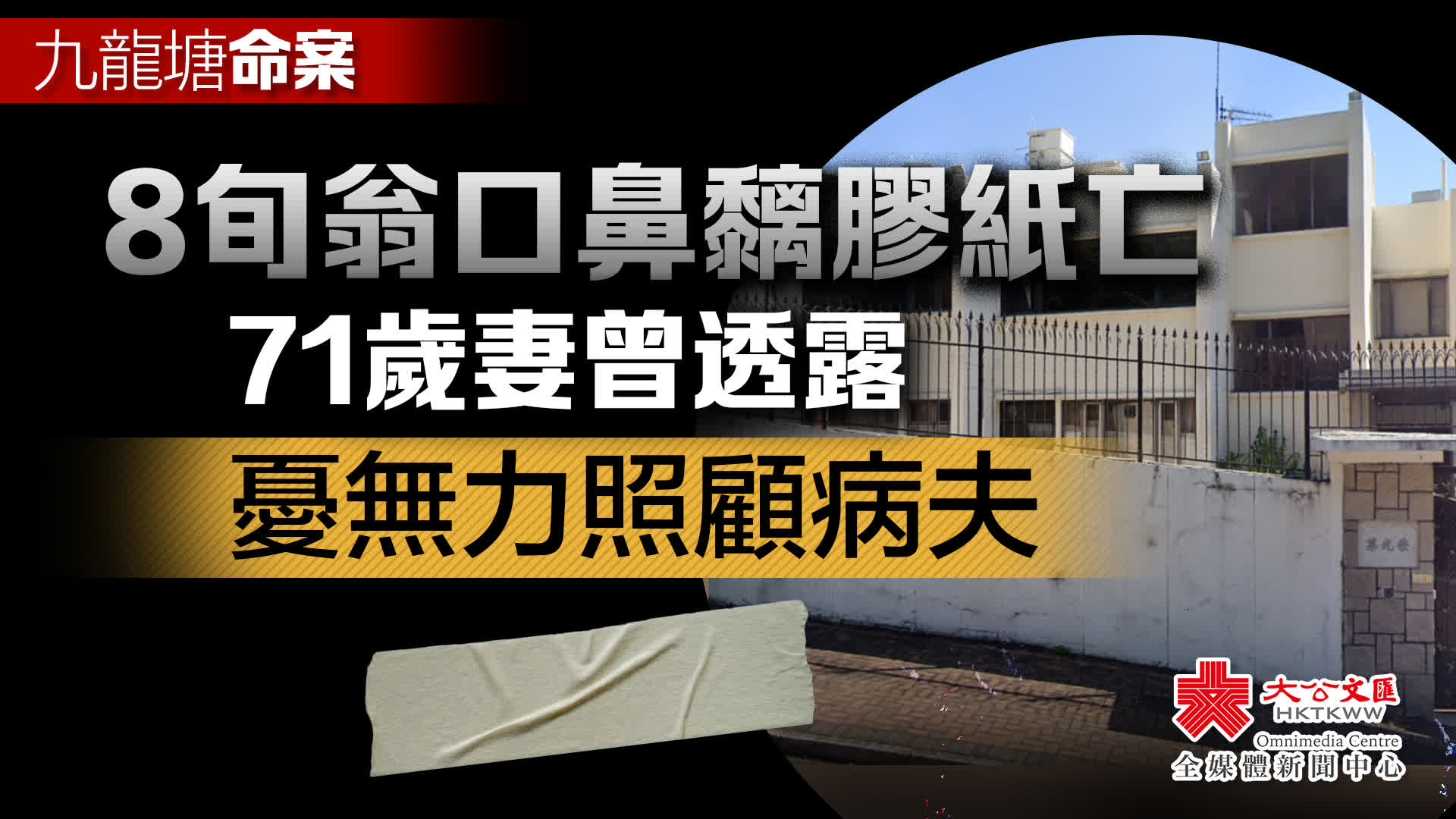 人員經初步調查後,相信該名女子先以膠紙覆蓋丈夫的口鼻,其後企圖自殺。人員於現場沒有檢獲遺書。警方在現場檢獲一把鎅刀,懷疑與案件有關。警方稍後將安排為死者進行驗屍,以確定其死因。九龍城警區重案組正調查案件。警方呼籲任何人如目睹案件發生或有資料提供,請致電3661 7859與調查人員聯絡。