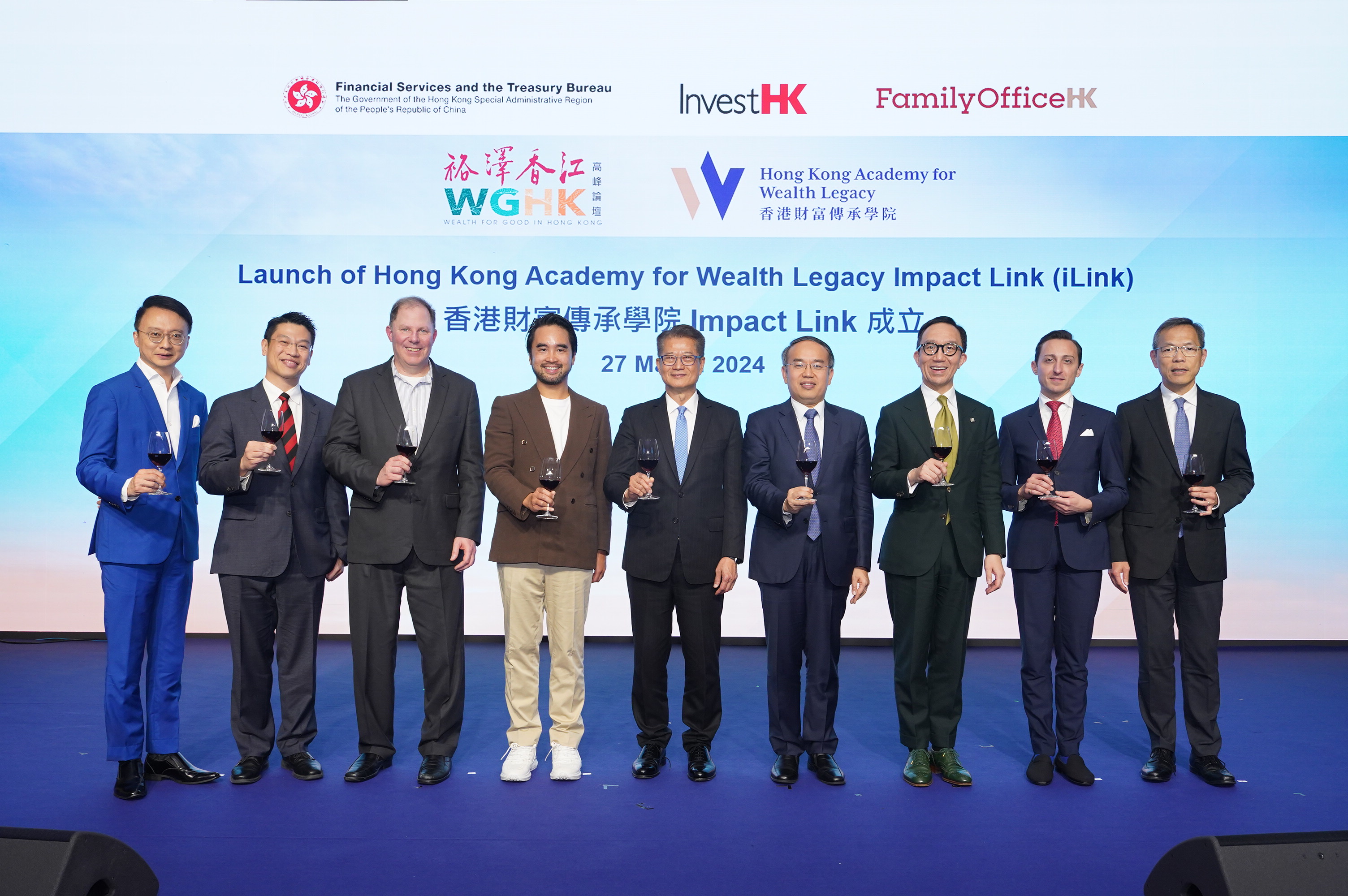 在「裕澤香江」高峰論壇晚宴上,政府宣布香港財富傳承學院將推出新的慈善項目計劃——「Impact Link」(iLink),藉此建立一個優秀慈善項目資料庫,以吸引、精選並展示一系列高潛力、高社會效益的慈善項目。這些項目須具備良好往績、以及在香港及對外拓展的潛力和影響力。iLink慈善項目計劃初期會重點關注全球醫療健康、早期生命科學研究、扶貧與發展、教育、青年發展,以及由人工智能、生物科技、大數據和綠色科技等前沿技術帶動的具韌性社區建設。iLink不僅是慈善項目的資訊平台,更是為慈善和相關持份者建立聯繫的橋樑,從而幫助家族辦公室和資產擁有人就其關心的慈善項目進行下一步審慎評估,並做出明智決策,推動其慈善捐款,創造對社會更深遠的影響。