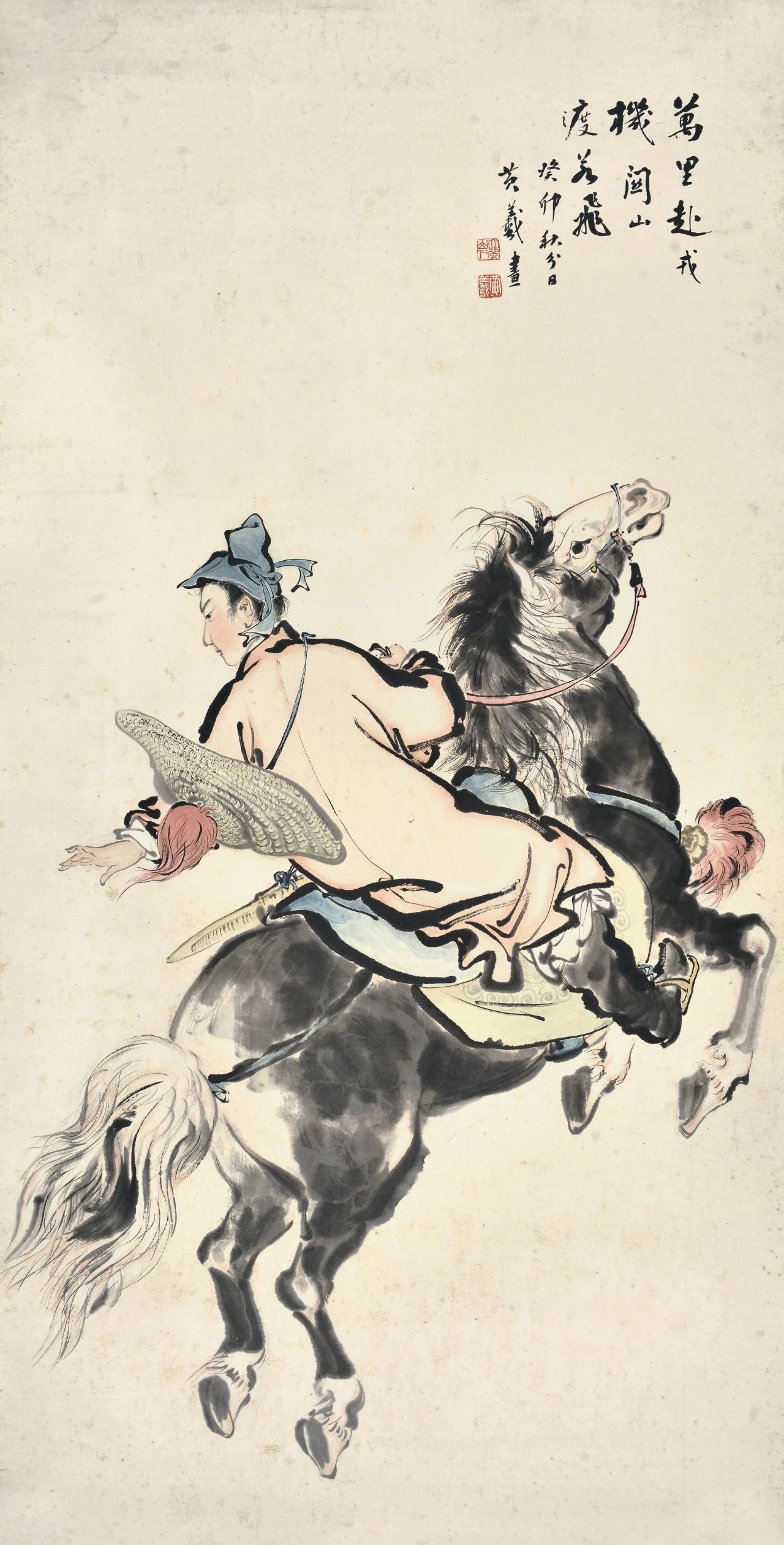黃羲(1899-1979),字苦亭,號大蜚山人,福建仙遊人。先後任教於上海美術專科學校、集美高中、仙遊師範學校、浙江美術學院等。他曾受教於吳昌碩、黃賓虹等名師大家,得潘天壽、劉海粟等賞識。他是近代「閩派」人物畫傳承的代表畫家,也是「新浙派」人物畫的重要奠基人之一。