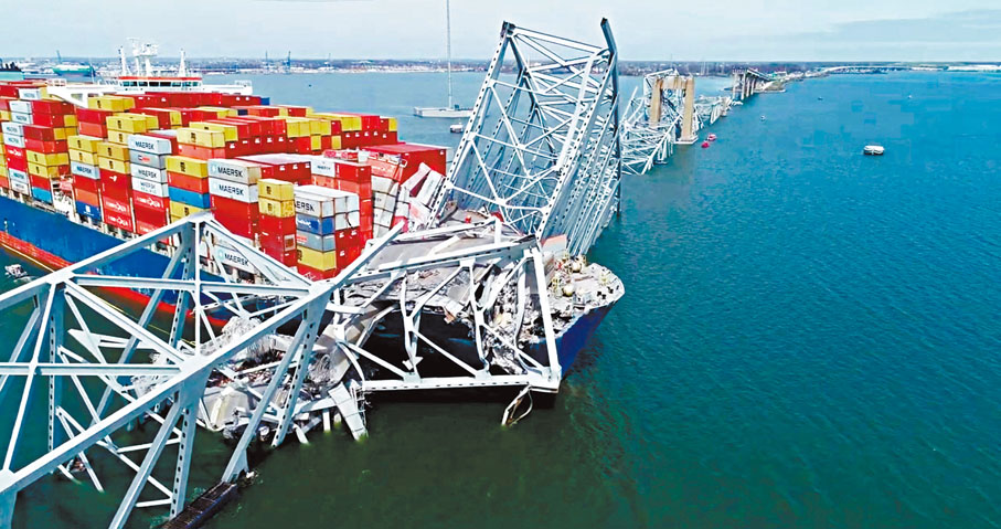 香港文匯報報道,美國巴爾的摩港的弗朗西斯科·斯科特·基大橋,周二(3月26日)被一艘貨櫃船撞毀。英國《衛報》引述專家指出,被撞毀的大橋於1977年完工,是「巨型貨櫃船」時代前產物,即使橋樑結構興建時符合標準,也難以承受貨櫃船的巨大衝擊力。美國道路與運輸業界協會也指出,美國現時超過三分之一的橋樑需要維修,今次事件凸顯美國橋樑基建安全整體缺陷需要審視。