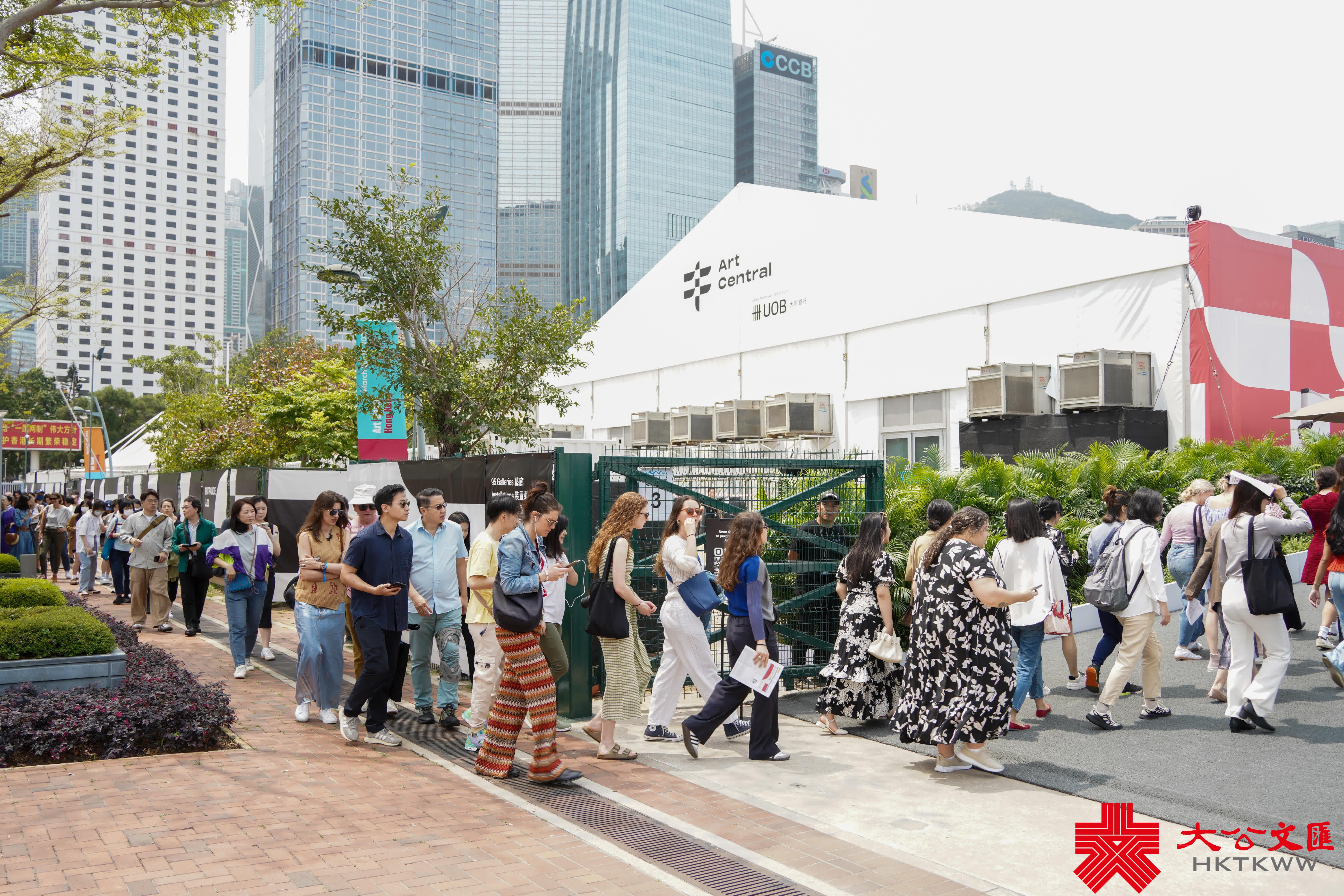 (大公文匯全媒體 記者 周傾芫)兩大藝術展會Art Central和巴塞爾藝術展(Art Basel)今日(28日)同步正式開展,其中第九屆Art Central一連4天舉行,是自2019年後再度回歸中環海濱。Art Central今年共有98間畫廊參展,三分之一首次參展,規模歷年最大,展會匯聚逾500個藝術家的作品。