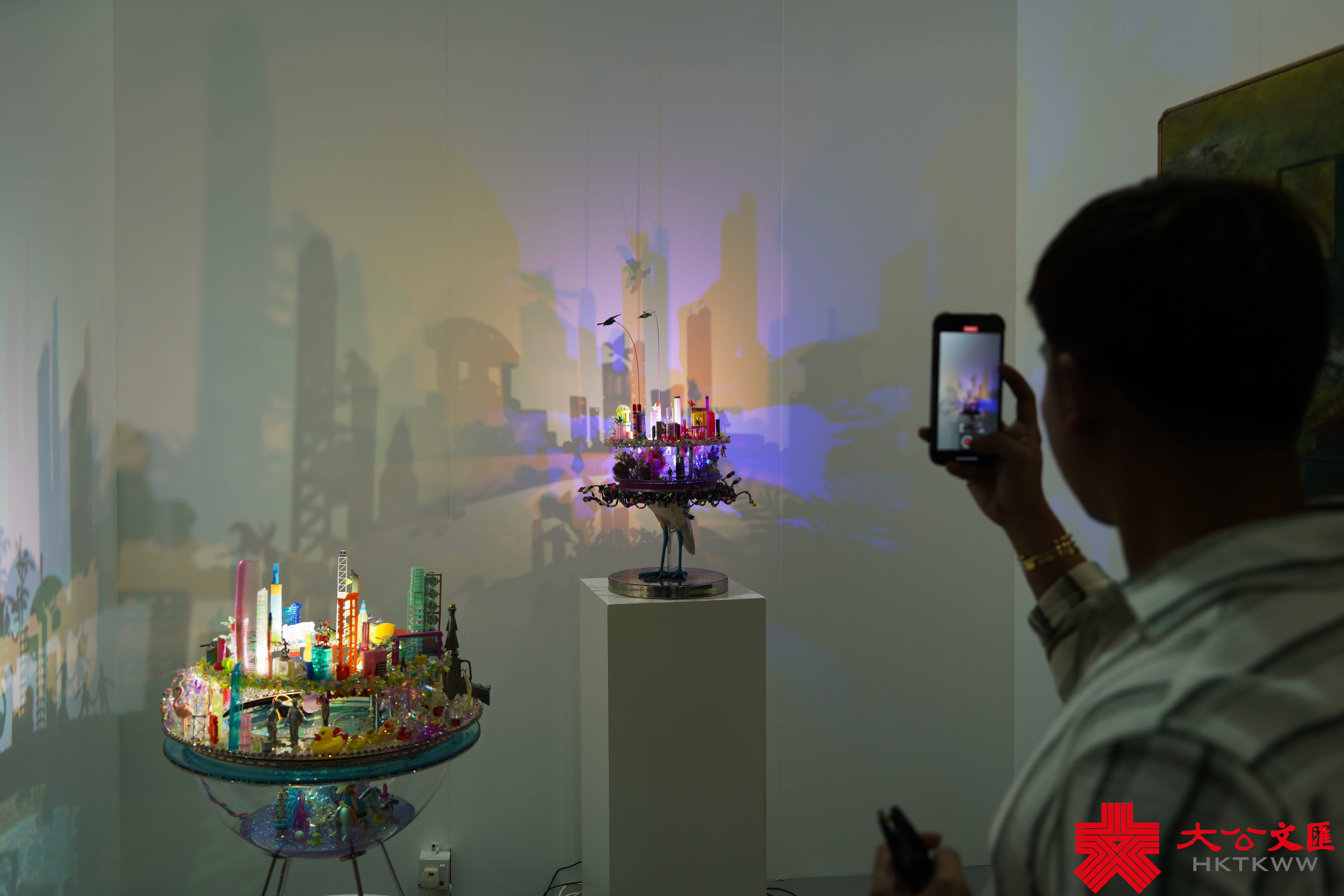 記者走進Art Central展館,發現展品造型各異,色彩斑斕的畫和雕塑物件讓人移不開目光。有些畫作富有青春的氣息,有些彰顯童趣,有些則光怪陸離。穿梭其中,可以聽到各個國家的人交流的聲音,來看展的人群有家庭、有情侶、有朋友、有個人,年齡層涵蓋老中青。