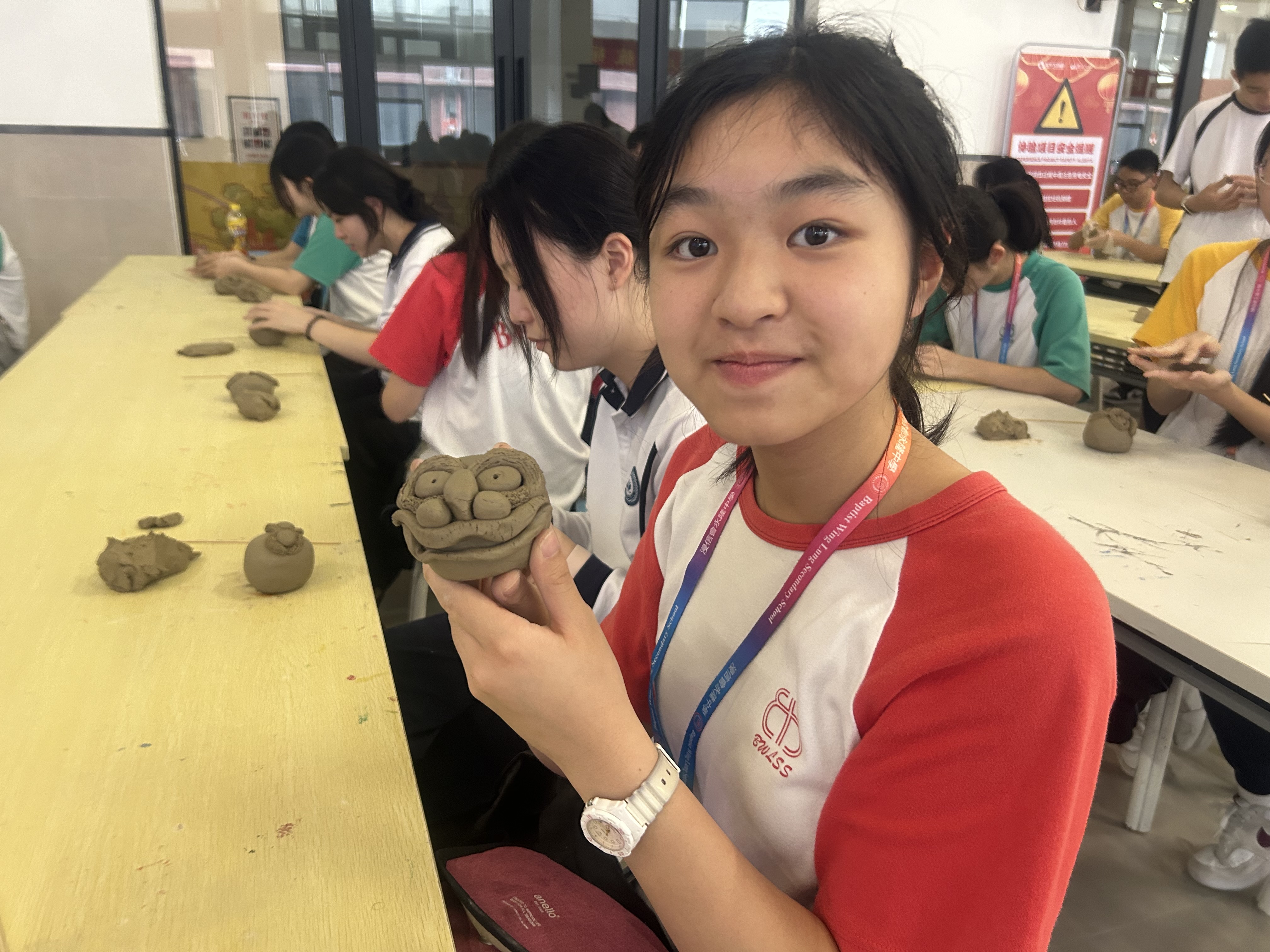同學們又來到全國重點文物保護單位南風古竈,這裏也是「南國陶都」佛山石灣鎮最具代表性的陶文化地標,也是大灣區重要的中華文化傳承教育基地。同學們跟着制陶師傅,學習手工捏陶。港生關樂晴製作的南獅,惟妙惟肖,得到師傅和老師們的肯定。