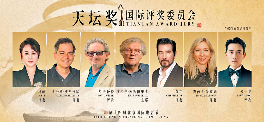 第十四屆北京國際電影節「天壇獎」國際評獎委員會陣容也在發布會上正式揭曉,塞爾維亞著名導演埃米爾·庫斯圖里卡擔任「天壇獎」評委會主席。6位評委分別為:澳洲電影聲音設計師大衛·懷特,演員費翔,奧地利導演傑茜卡·豪絲娜,巴西導演卡洛斯·沙爾丹哈,演員馬麗、朱一龍。據了解,本屆北影節將舉行3場電影大師班,分別為:本屆 「天壇獎」評委會主席庫斯圖里卡大師班,主題為 「國族史詩與心靈奇跡」,對談嘉賓是知名作家余華。同時還將設立中國香港導演許鞍華大師班,導演文晏擔任對談嘉賓、學者戴錦華擔任主持;以及演員、導演陳沖大師班,邀請導演馮小剛擔任對談嘉賓,作家許知遠擔任主持。發布會現場還公布了本屆電影節主海報。據介紹,海報採用中國傳統水墨畫風格繪製而成,遠觀像是一座松柏盆景,又像是北京天壇祈年殿。天壇不僅是代表北京的世界文化遺產,更是北京國際電影節「天壇獎 」 的精神象徵。將天壇祈年殿與松柏盆景的造型融為一體,傳遞了北影節 「天人合一,美美與共 」 的價值理念。