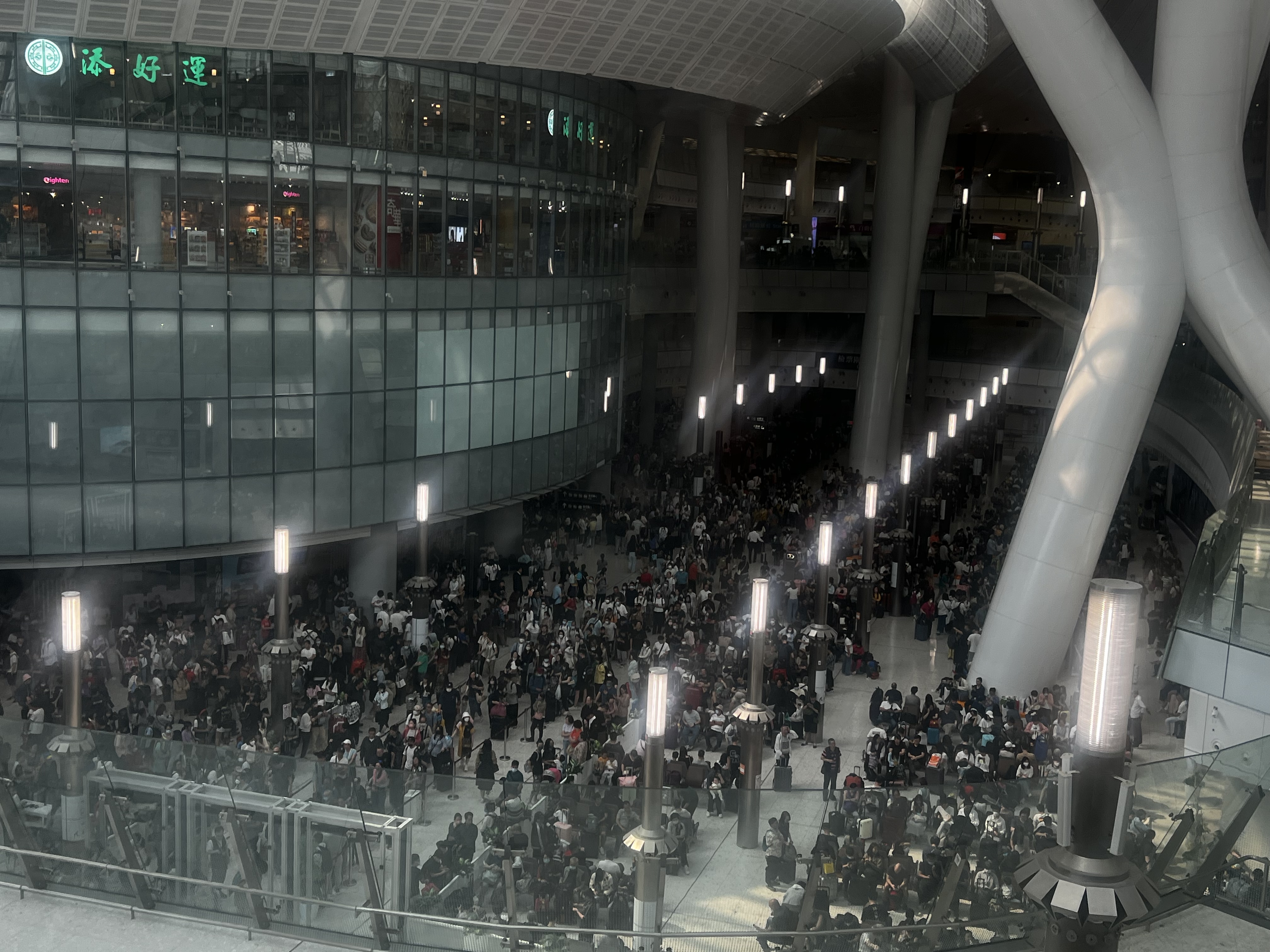 今日上午多個陸路口岸都人頭湧湧。在高鐵西九龍站,離港大堂和閘口出現人潮,有市民一家大小出行,職員在場維持秩序。不少市民選擇跟旅行團到內地,有市民選擇到江西3日2夜,指跟團相對簡單,行程主要是體驗當地美食,預料將花費幾千元。