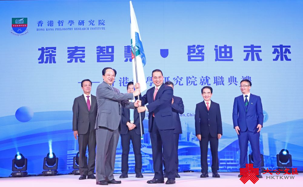 (大公文匯網 記者 毛麗娟)3月29日晚,香港哲學研究院就職典禮在深圳希爾頓酒店(蛇口南海店)舉行,中央政府駐港聯絡辦副主任劉光源現場為香港哲學研究院主席兼院長舒心博士頒發證書,並將「香港哲學研究院院旗」移交給舒心博士。劉光源代表中央政府駐港聯絡辦對香港哲學研究院的成立表示祝賀,稱該研究院的成立是香港學術界、文化界的一大盛事,也是香港建設中外文化藝術交流中心的一大喜事。