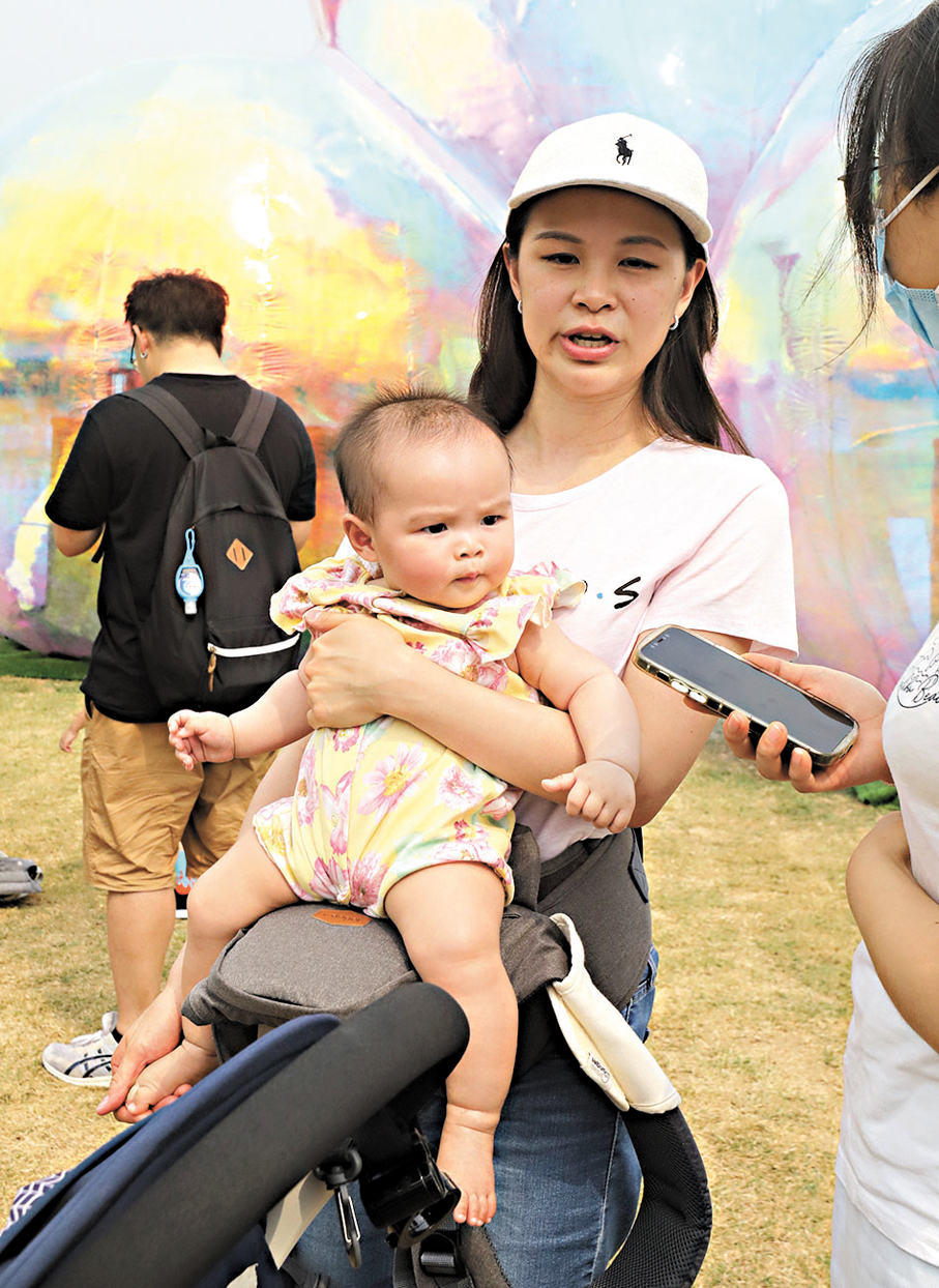 梁女士與丈夫帶同幾歲的兒子及半歲的女兒到場散步及拍照打卡。她說,由於一對子女年紀還小,故沒打算於今個小長假北上或到外國遊玩。