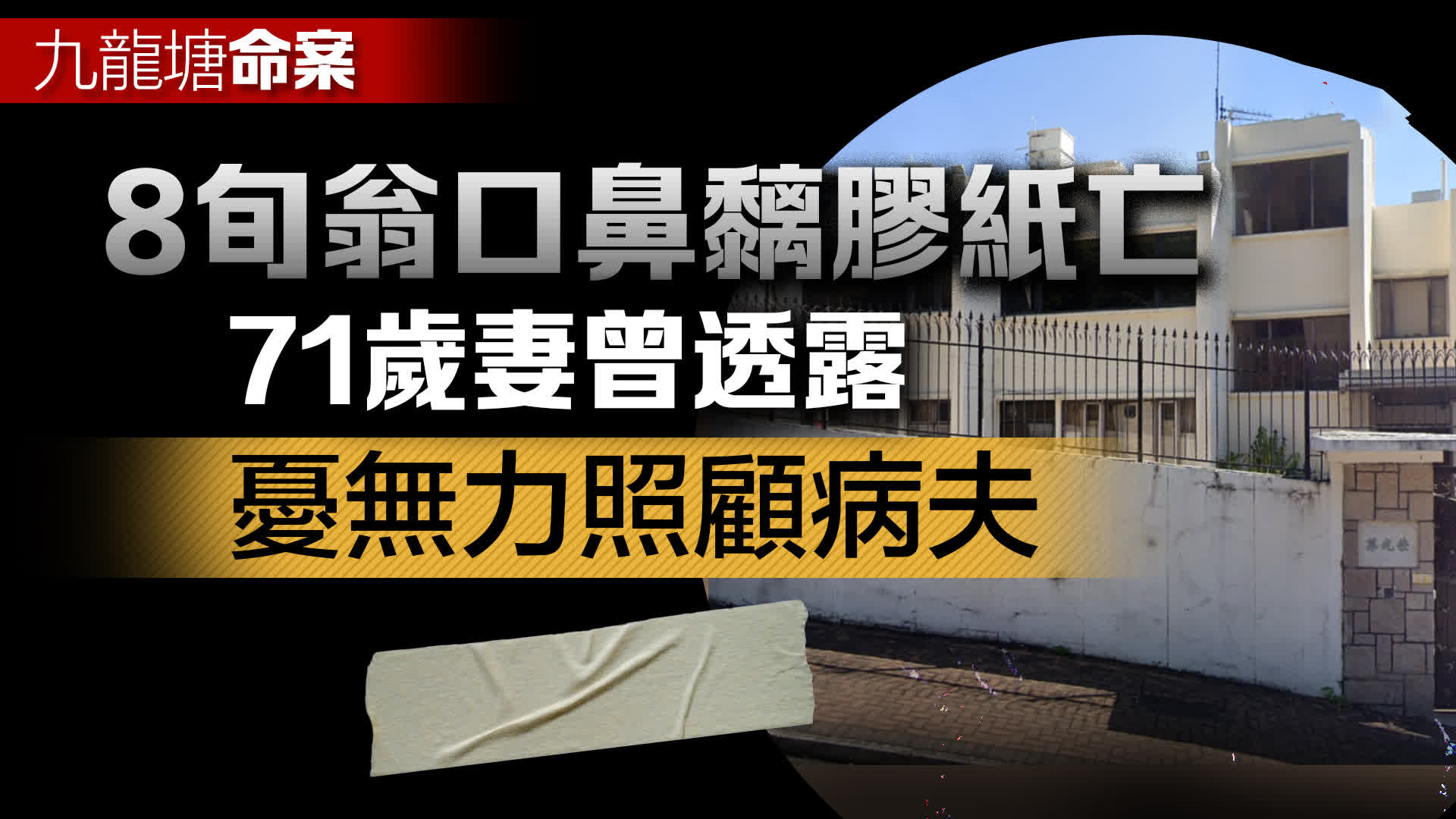 警方經調查後,以涉嫌「謀殺」拘捕該名71歲姓鄭妻子,相信她涉嫌先以膠紙覆蓋84歲丈夫的口鼻,其後割頸𠝹手企圖自殺。據悉,男死者鄭建煌患有腦退化症及肌肉萎縮,長期臥床,行動不便需要別人照顧;女事主亦患有抑鬱症和情緒病,曾透露擔心無力照顧病夫而萌生死念。