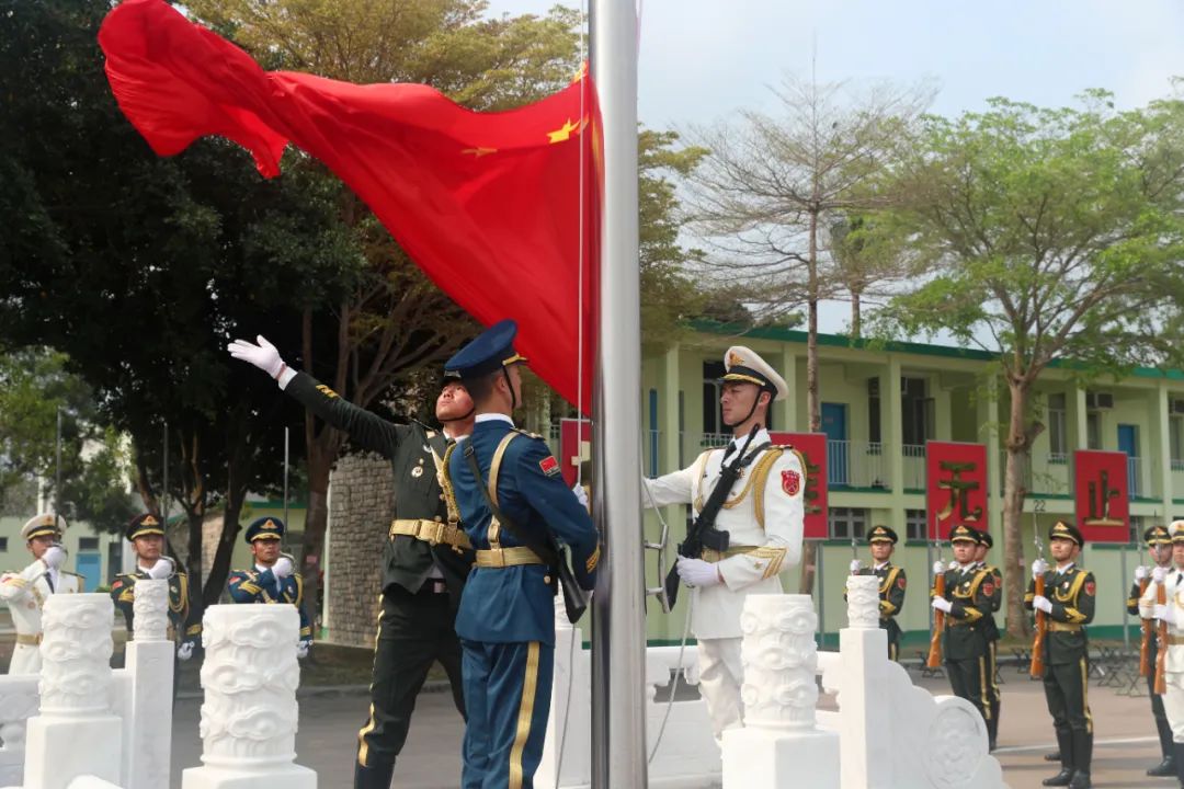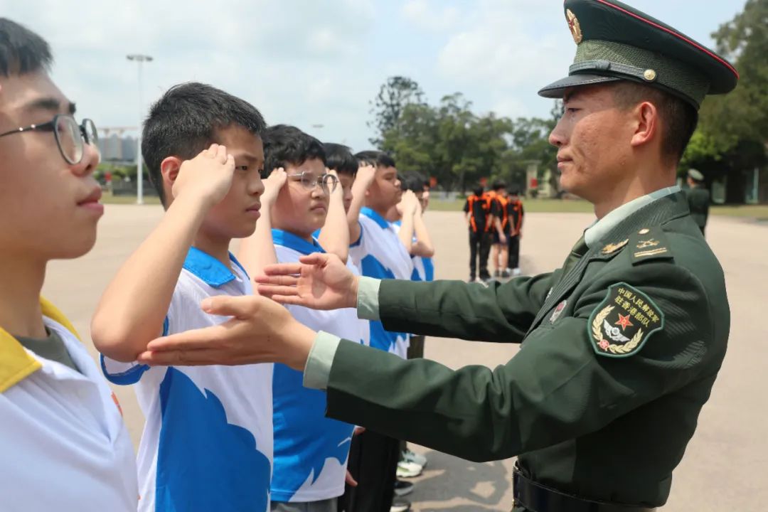 9時許,軍事體驗營活動在隆重的升國旗儀式中拉開帷幕。「起來,起來……」隨着軍樂隊奏響國歌,現場香港青少年與駐軍官兵一起莊嚴肅立,註視着五星紅旗冉冉升起。隨後,他們分組參加隊列訓練,在一令一動中體驗軍旅生活、展現青春風采。