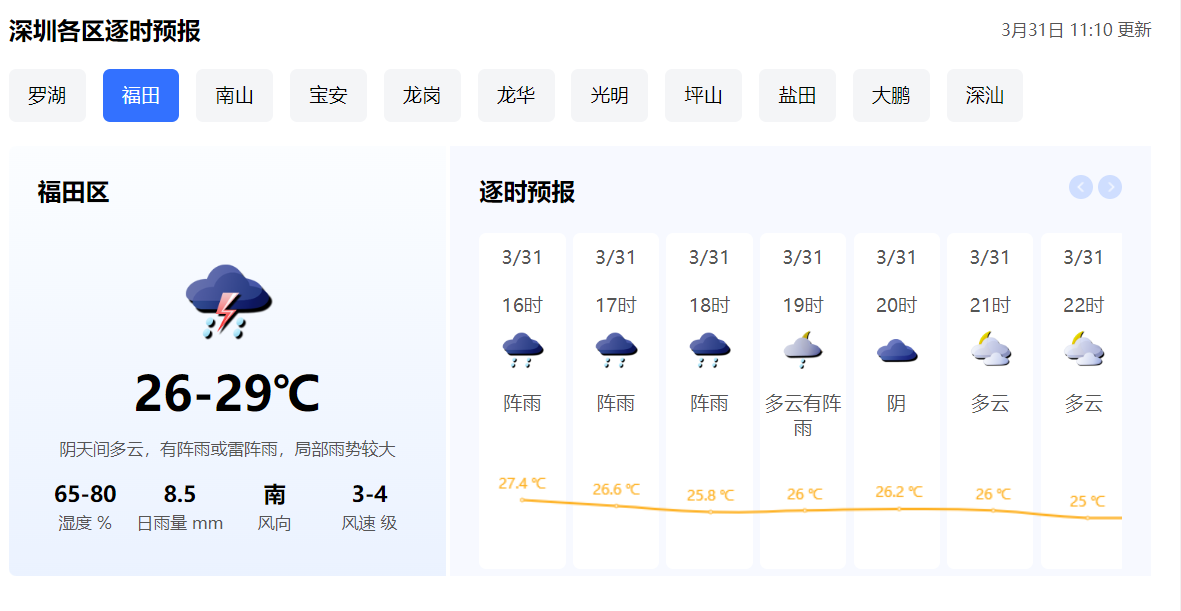 大公文匯全媒體報道,不少港人趁復活及清明假期北上深圳遊玩,惟深圳今日(31日)天氣不穩定,建議港人出門可隨身帶傘,在沿海、高地和海上活動更要注意做好防風措施。